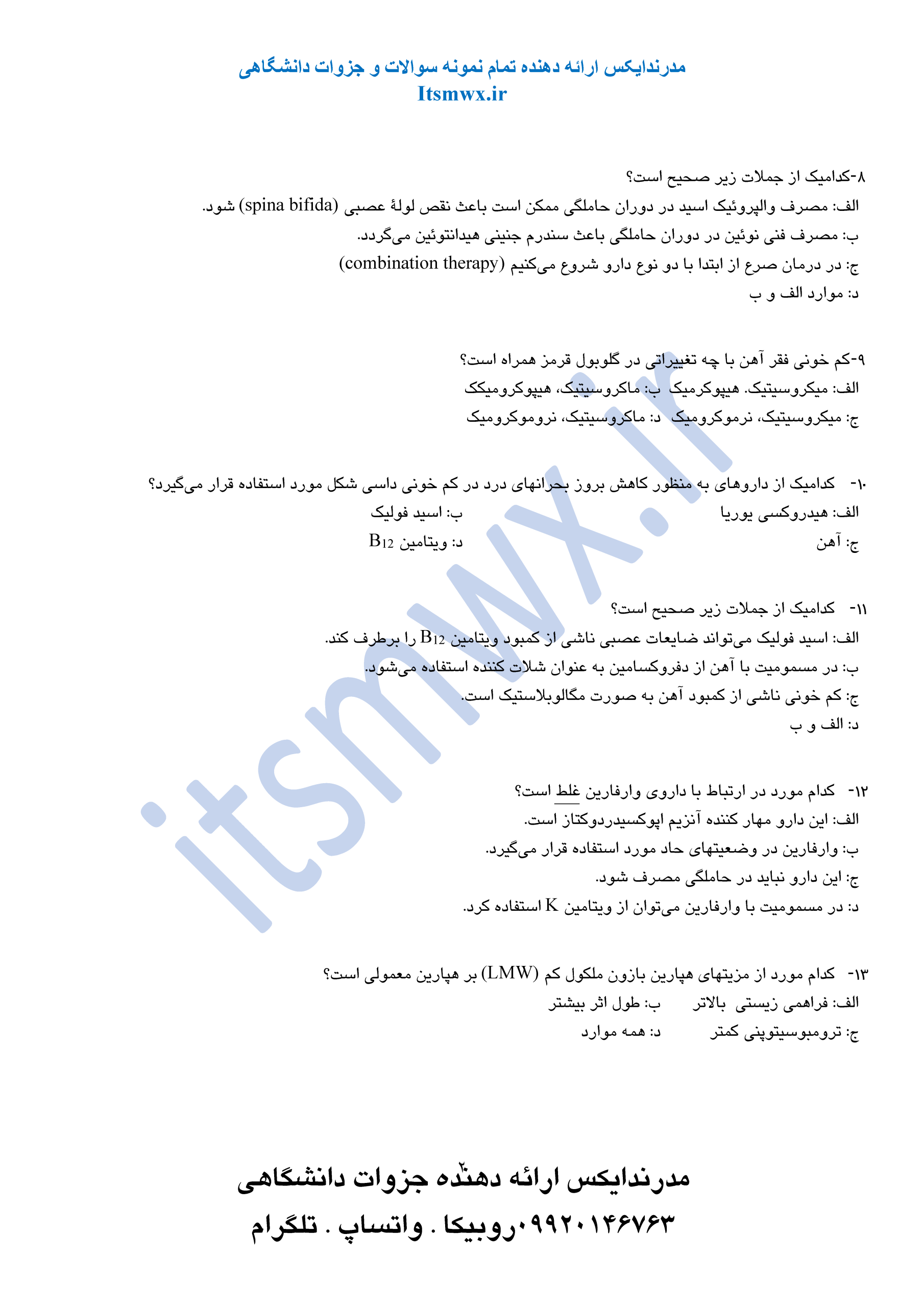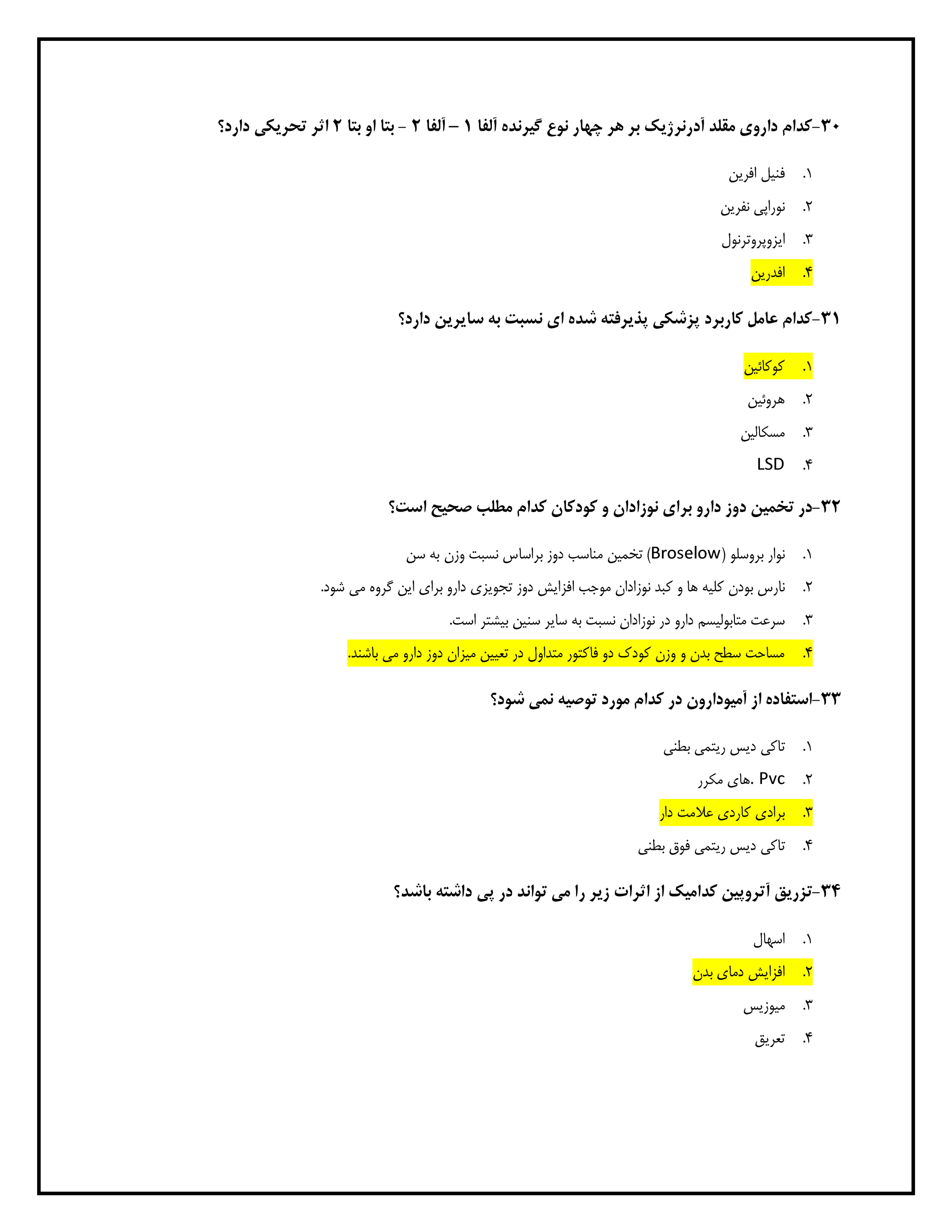 فهرست بعضی از جزوه کامل فارماکولوژی