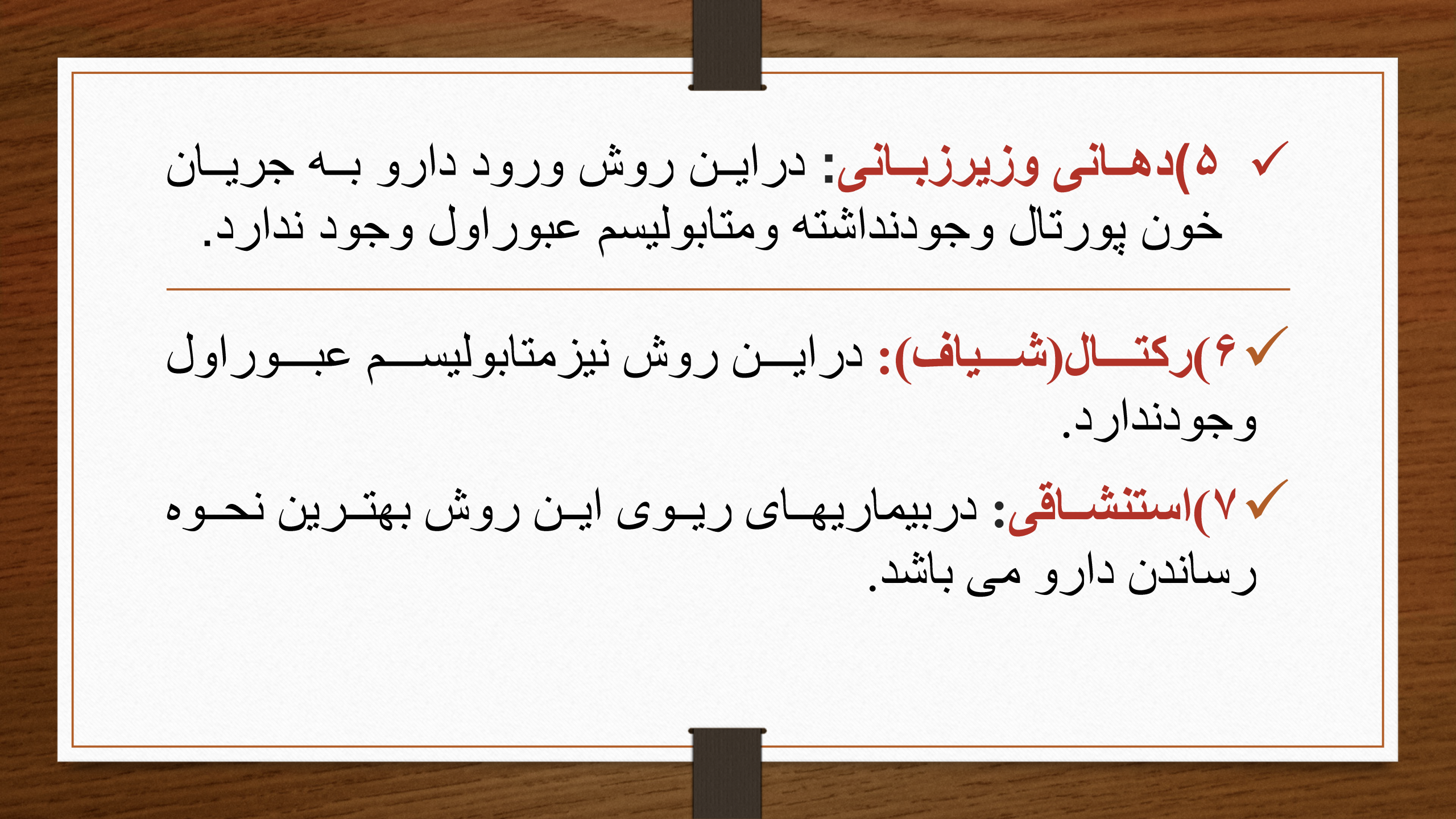 ۱-در مصرف خوراکی غلظت خونی برابر با غلظتهای حاصل از تزریق ایجاد می کند