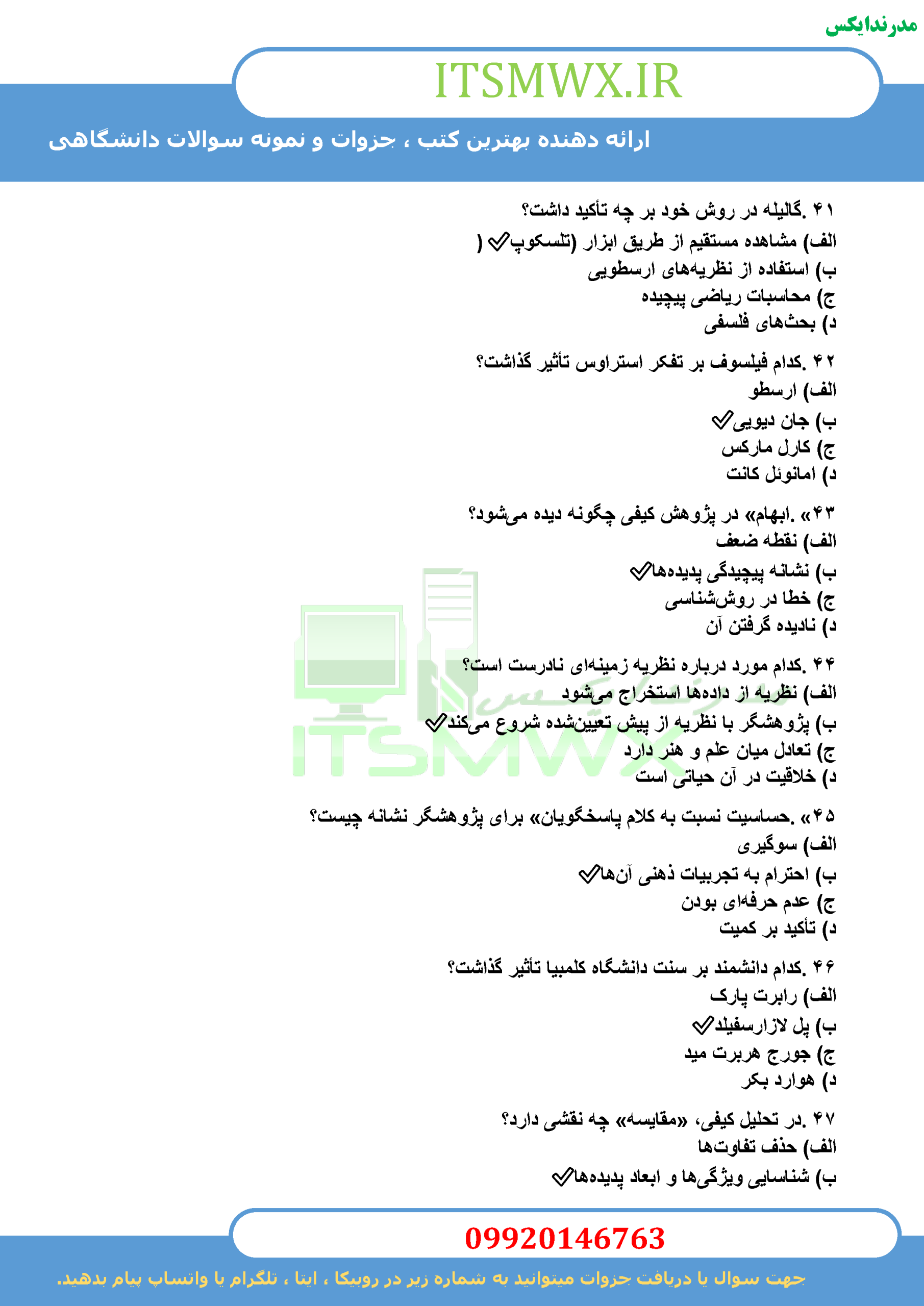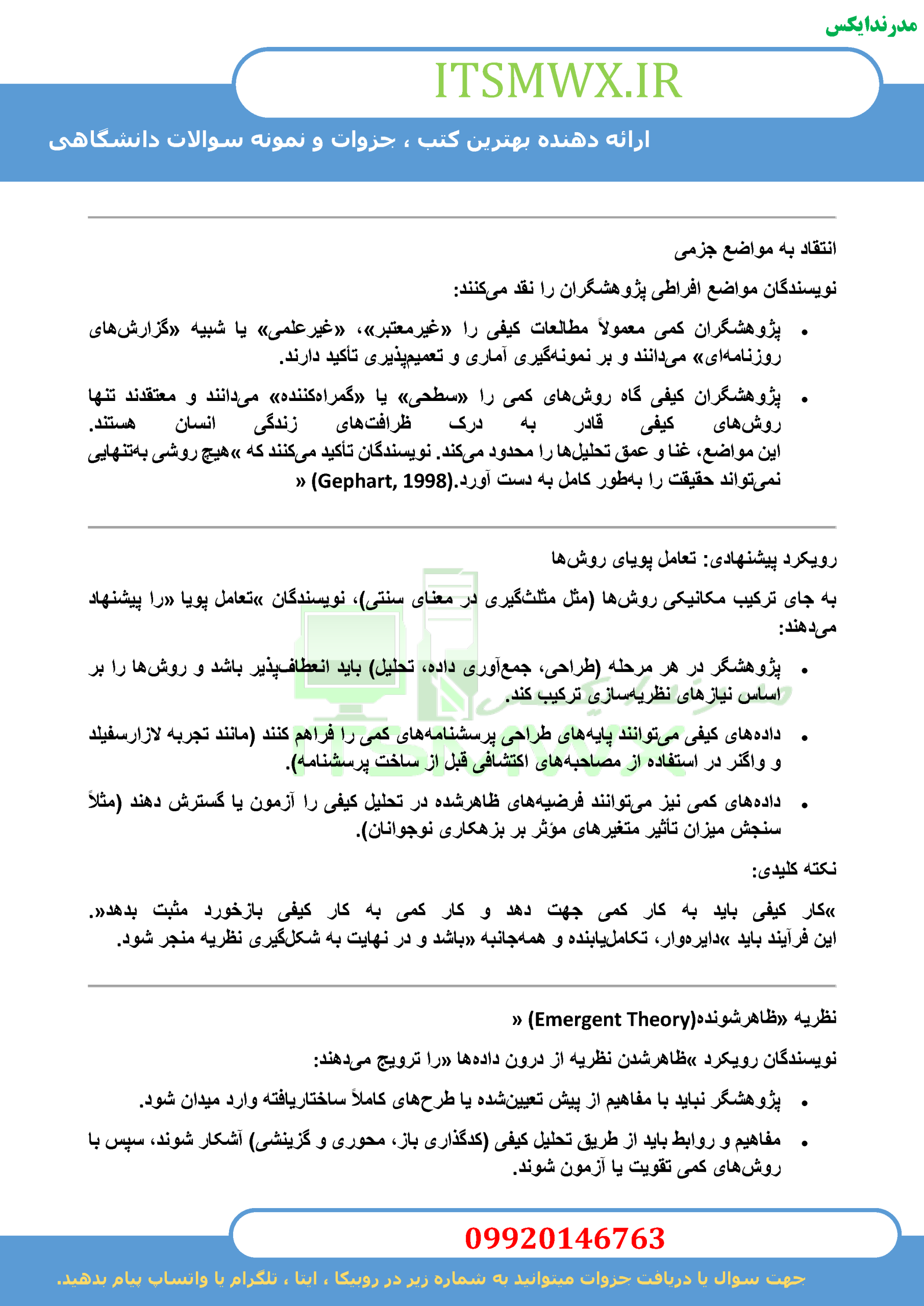 این مجموعه تنها یک بانک سؤال نیست؛ راهکاری جامع برای تسلط بر پژوهش کیفی است. با ترکیب نمونه سؤالات استاندارد، خلاصههای خلاصهشده، و فرمت کاربرپسند، زمان مطالعه شما را ۵۰٪ کاهش داده و اعتمادبهنفس شما را برای قبولی در دانشگاههای معتبر افزایش میدهد.