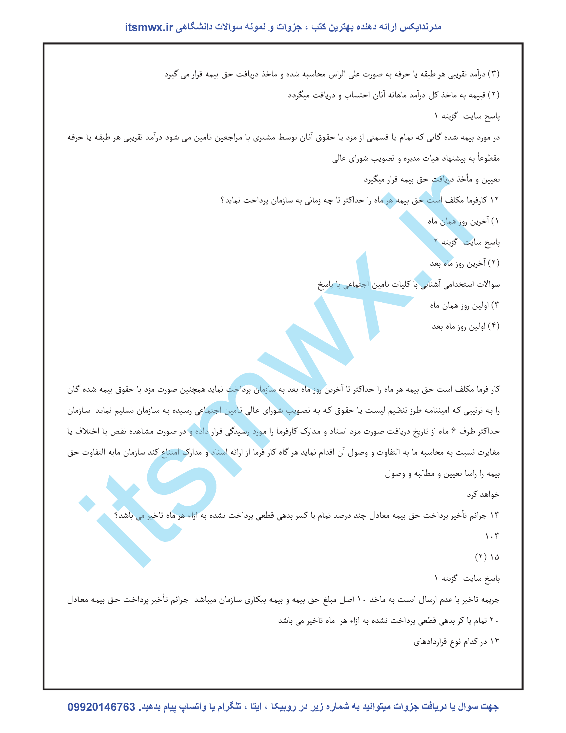 15 اصل سوال استخدامی شناخت تامین اجتماعی به همراه پاسخنامه تشریحی در 6 صفحه