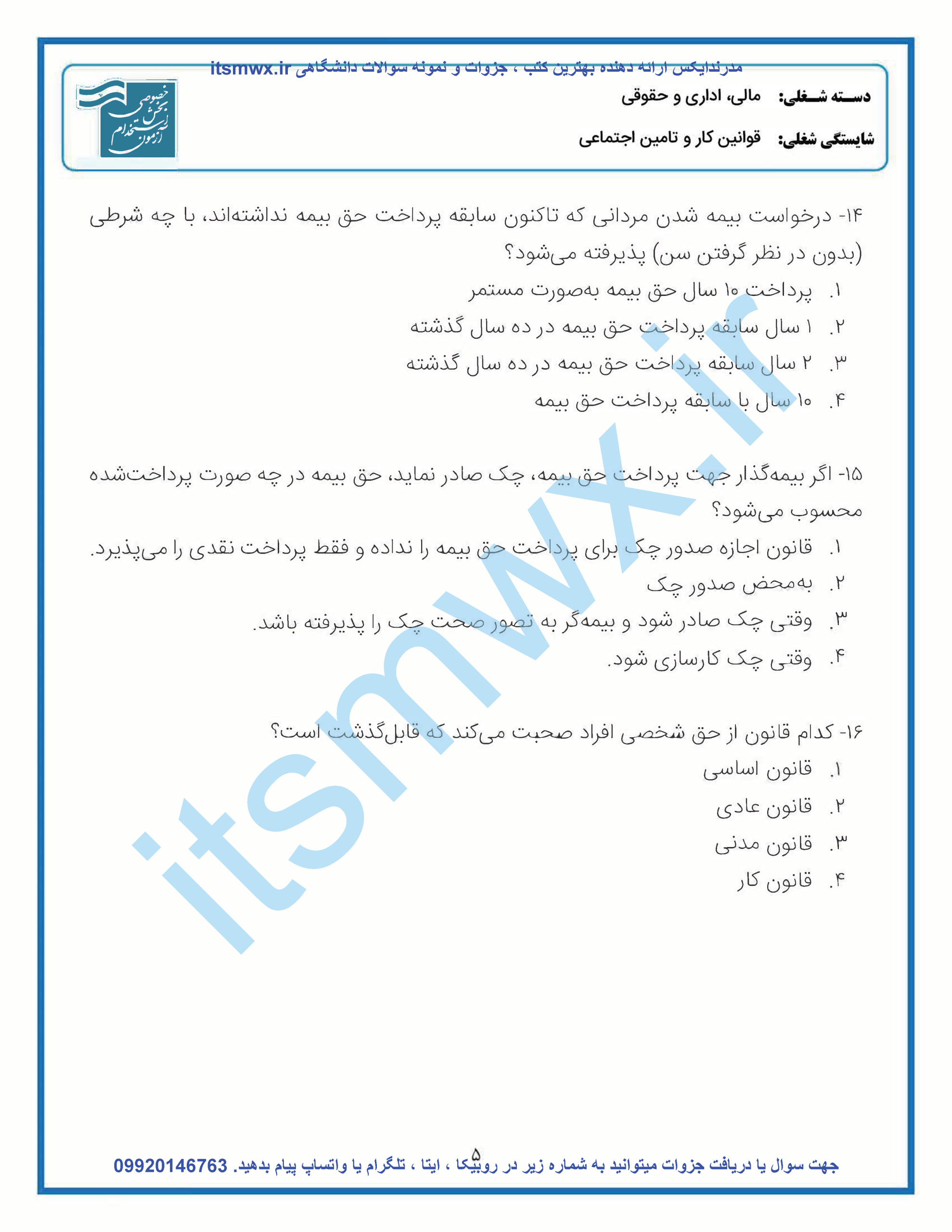 3- مجموعه اصل سوالات استخدامی قوانین کار و تامین اجتماعی بخش خصوصی سال 1400