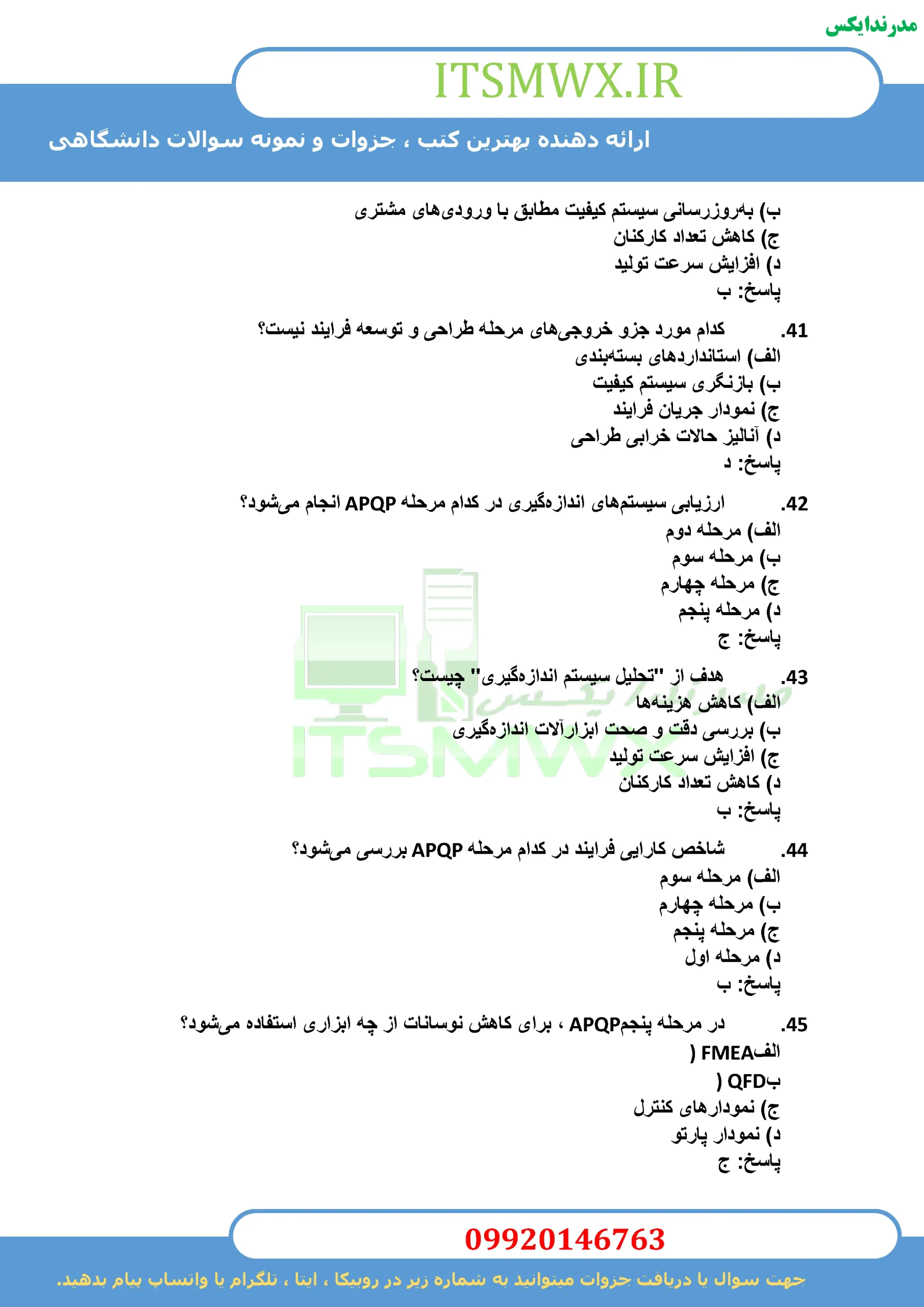 - تمام سوالات و خلاصههای این مجموعه تحت نظر دکتر علی سلماسنیا تدوین شدهاند. ایشان با بیش از ۲۰ سال سابقه تدریس در دانشگاههای معتبر و همکاری با سازمانهای بینالمللی کنترل کیفیت (مانند ASQ)، محتوایی ارائه دادهاند که کاملاً همسو با آخرین استانداردهای آکادمیک است.