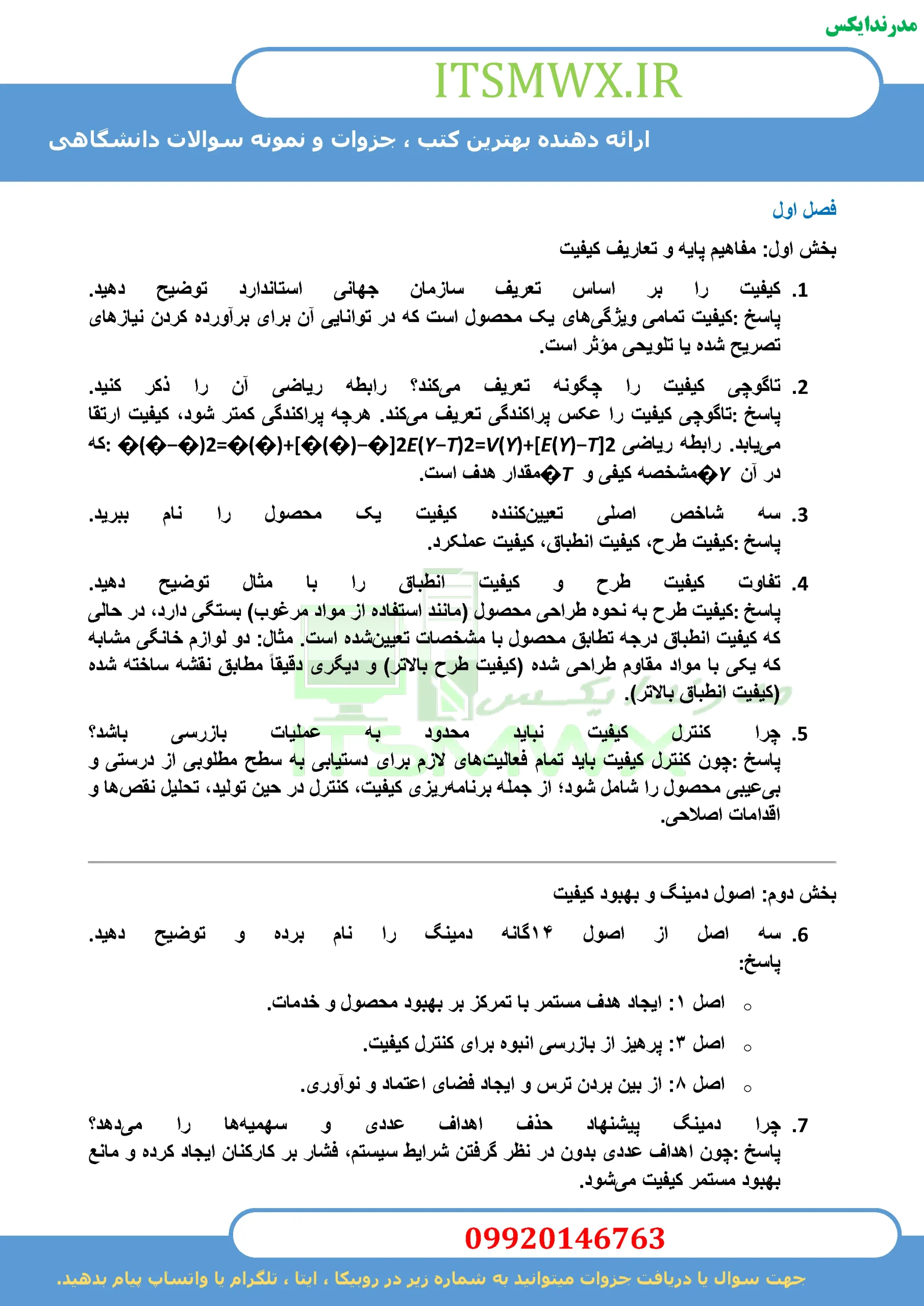 جدیدترین نمونه سوالات تستی و تشریحی فصل به فصل مبانی کنترل کیفیت اثر علی سلماس نیا + خلاصه و کتاب (قابل سرچ)