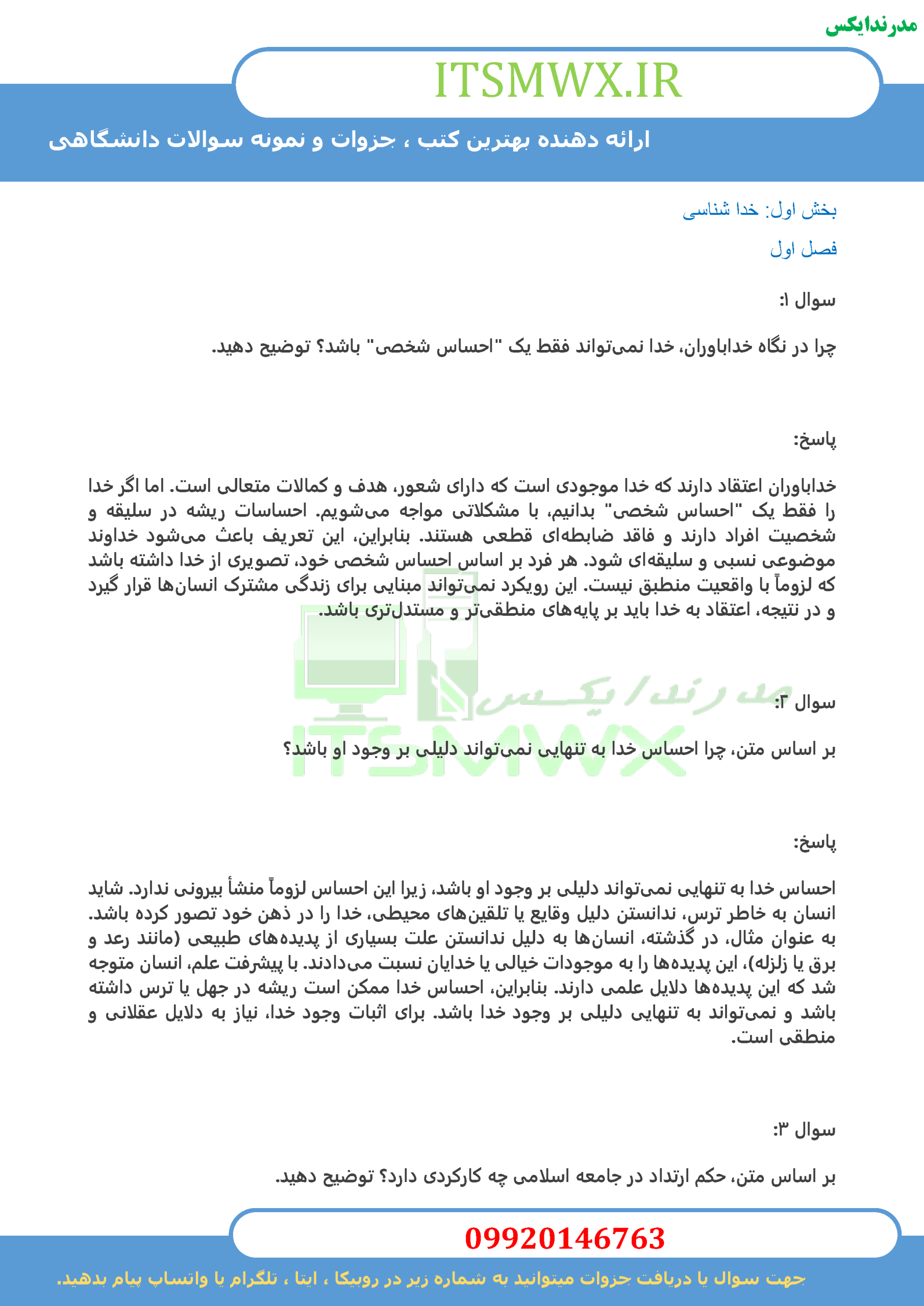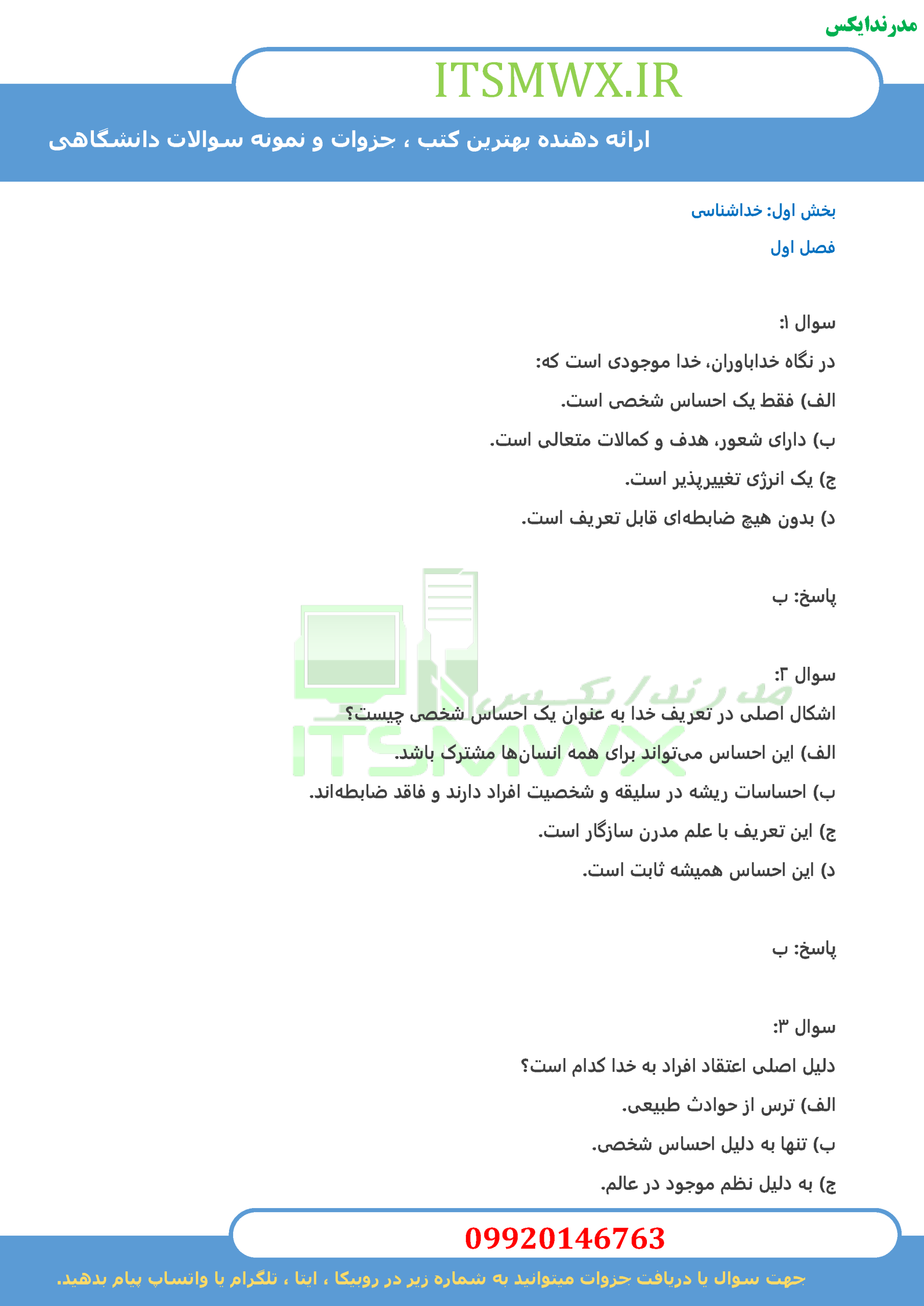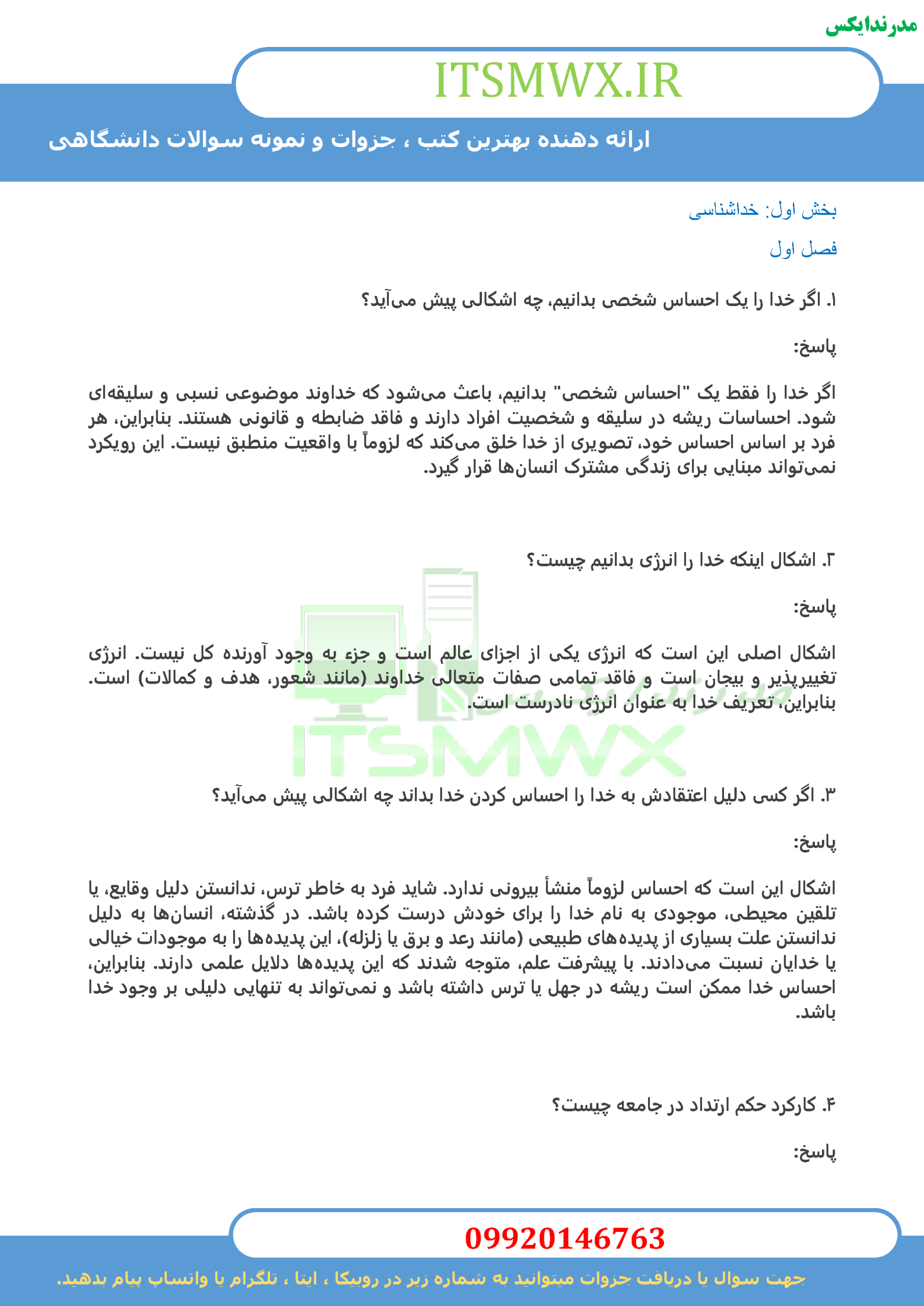 جواب سوالات اندیشه اسلامی ۱ مهدی ترتیفی