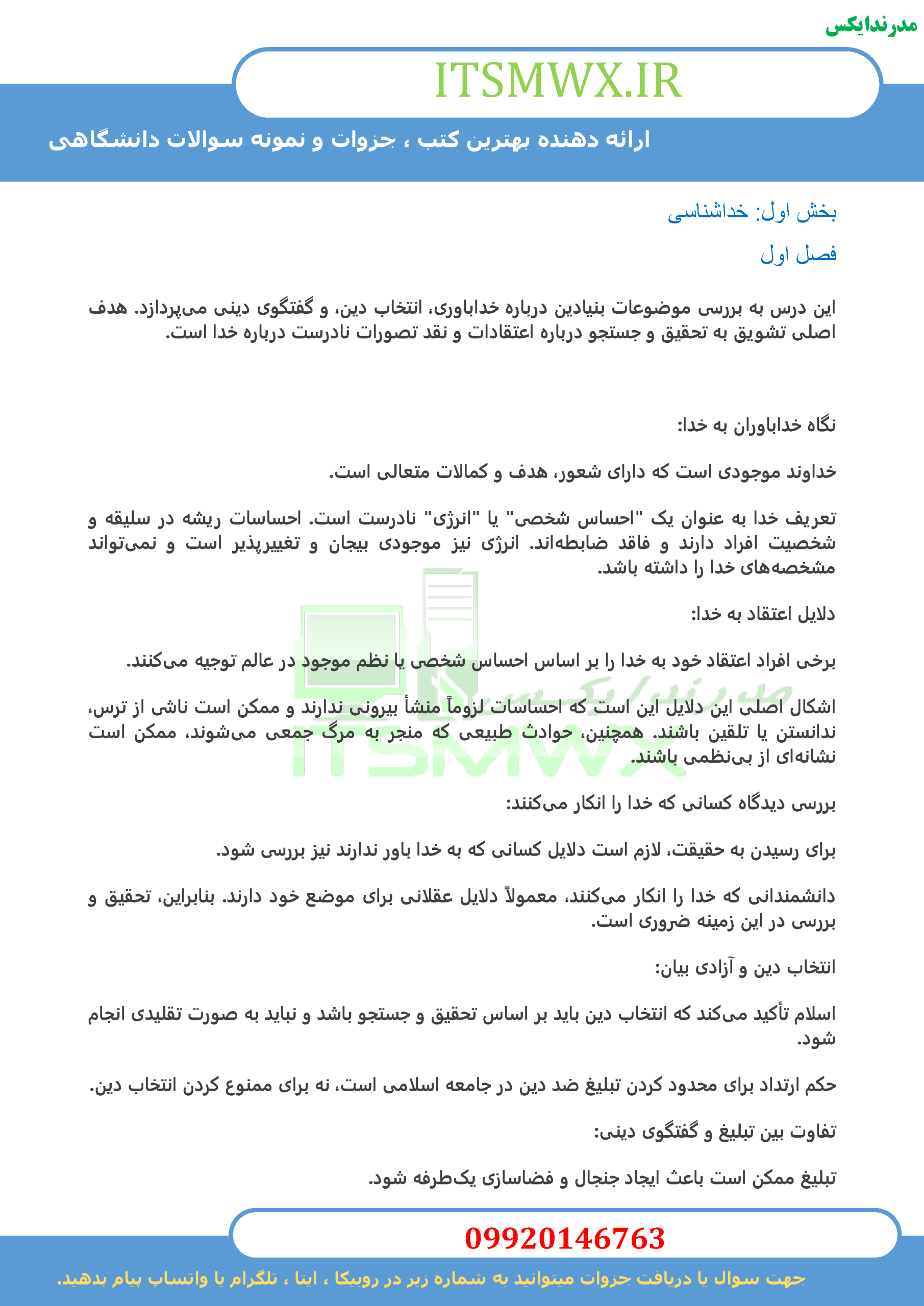 نمونه سوالات تستی و تشریحی فصل به فصل اندیشه اسلامی 1 اثر حجت السلام مهدی ترتیفی + کتاب و خلاصه