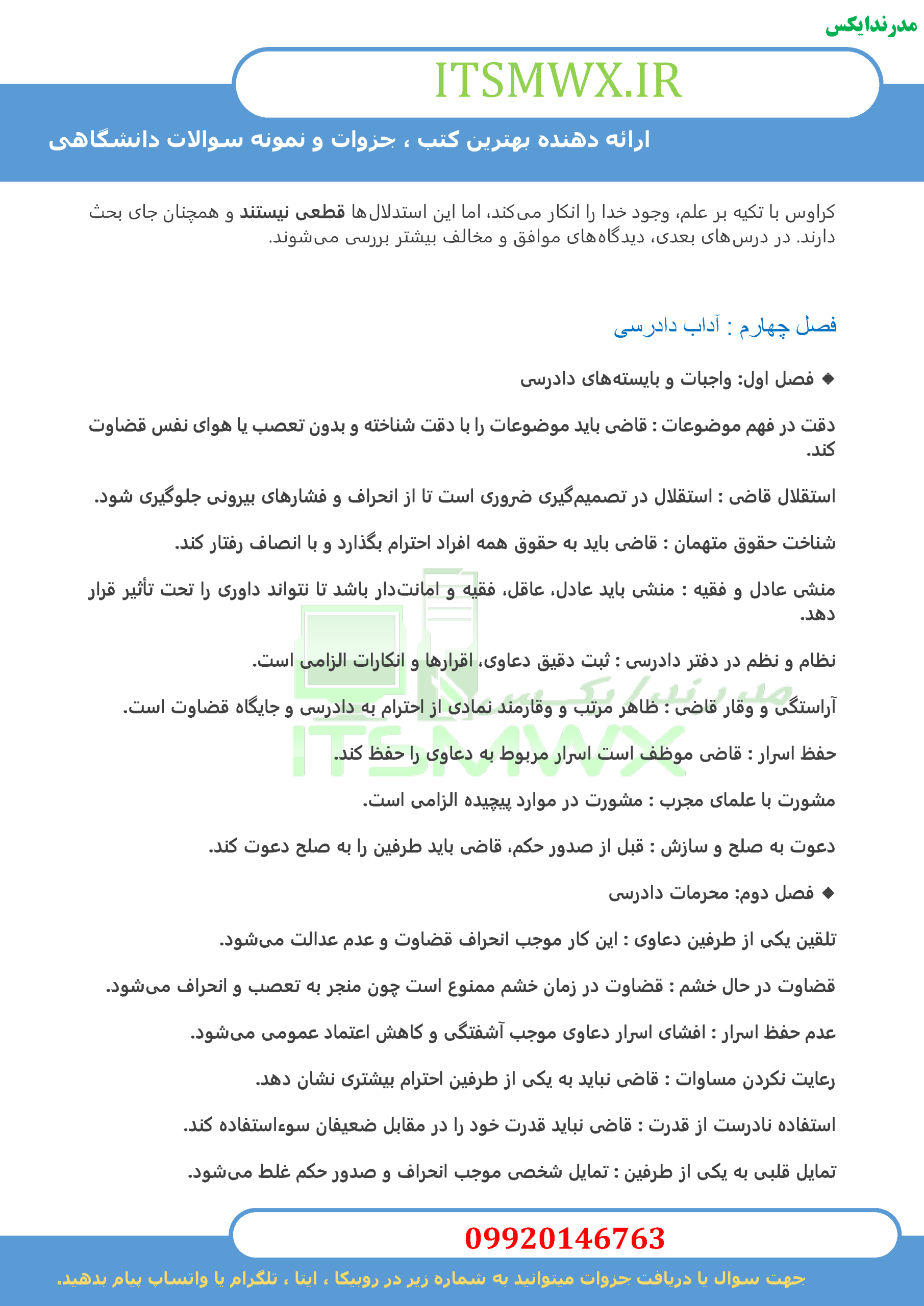 نمونه سوالات تستی و تشریحی فصل به فصل اخلاق و آداب قضاوت اثر محمد کاظم بهرامی + کتاب و خلاصه (قابل سرچ)