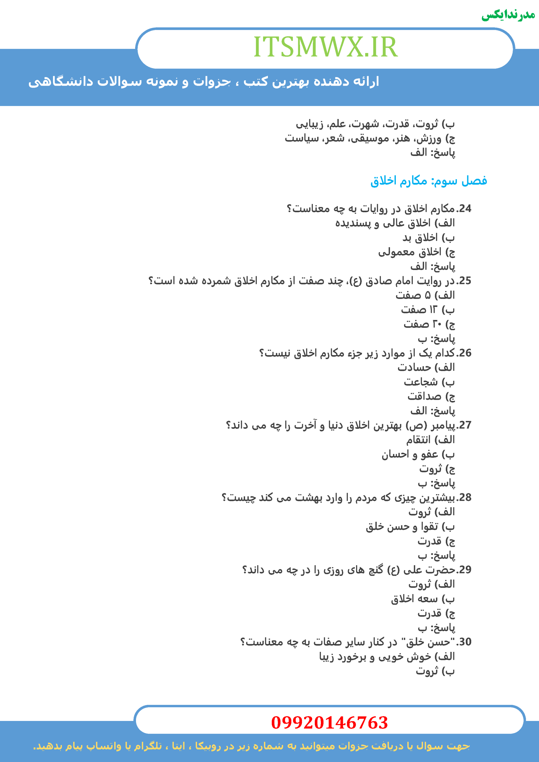 شامل 428 نمونه سوال تستی فصل به فصل به همراه پاسخ کنار سوال با قابلیت سرچ