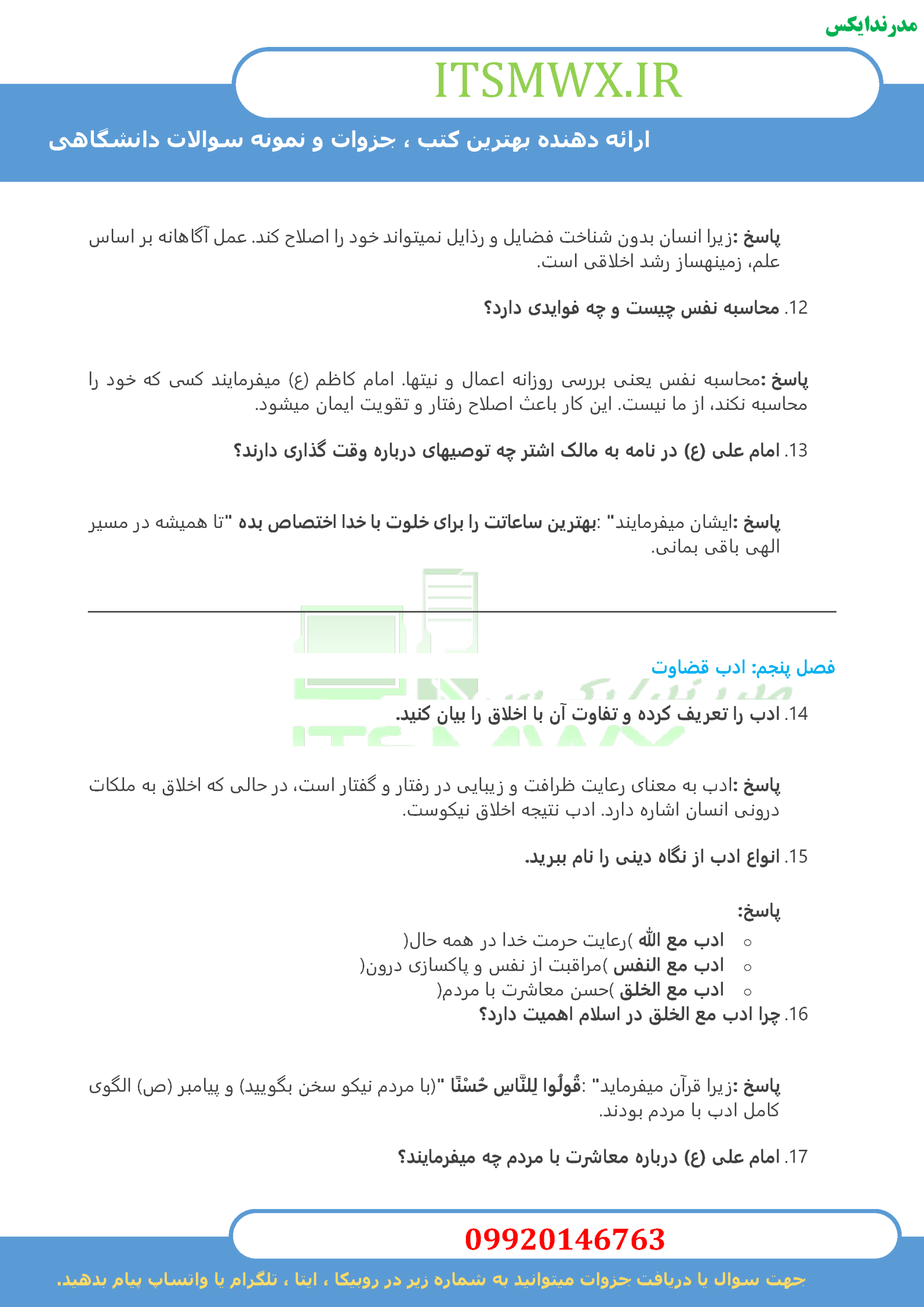 بیش از 150 نمونه سوال تشریحی فصل به فصل به همراه پاسخ کنار سوال با قابلیت سرچ