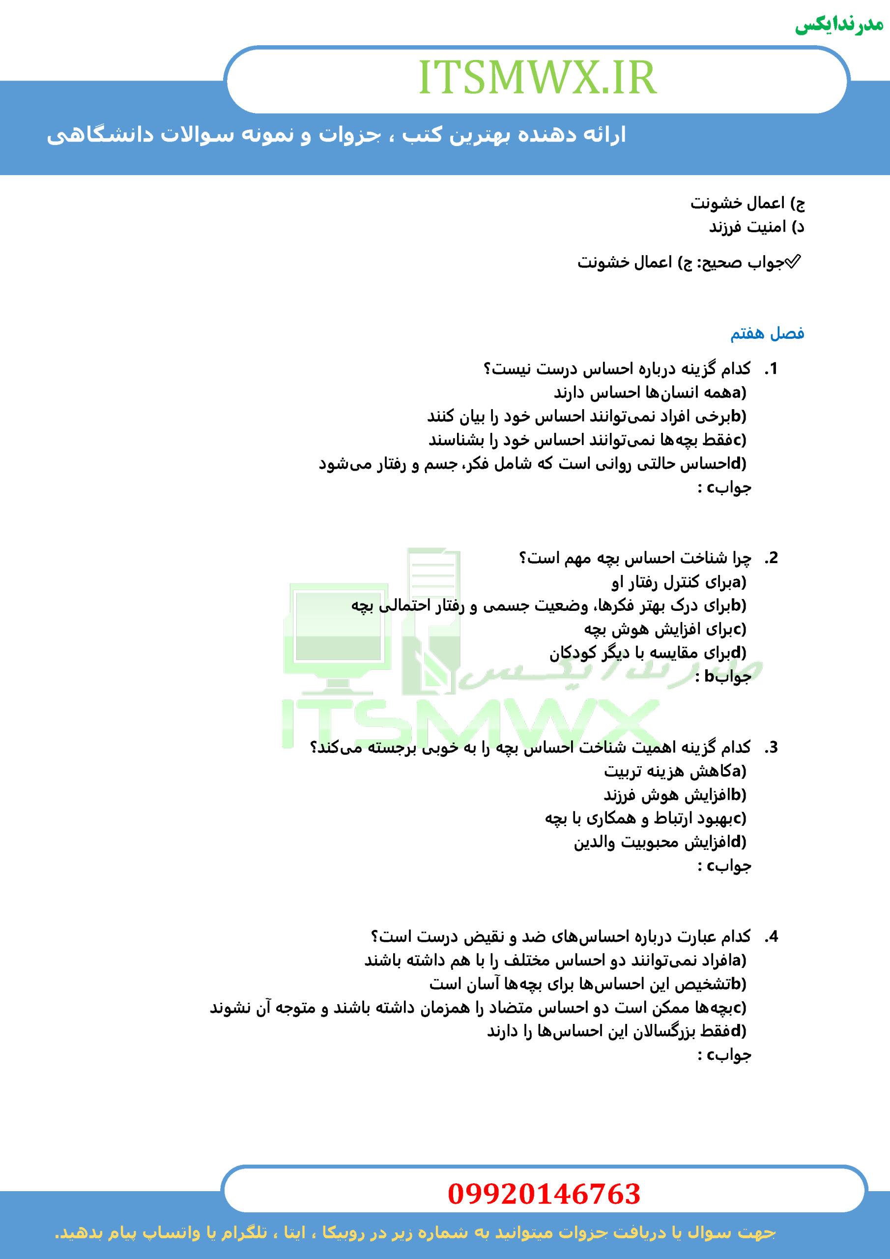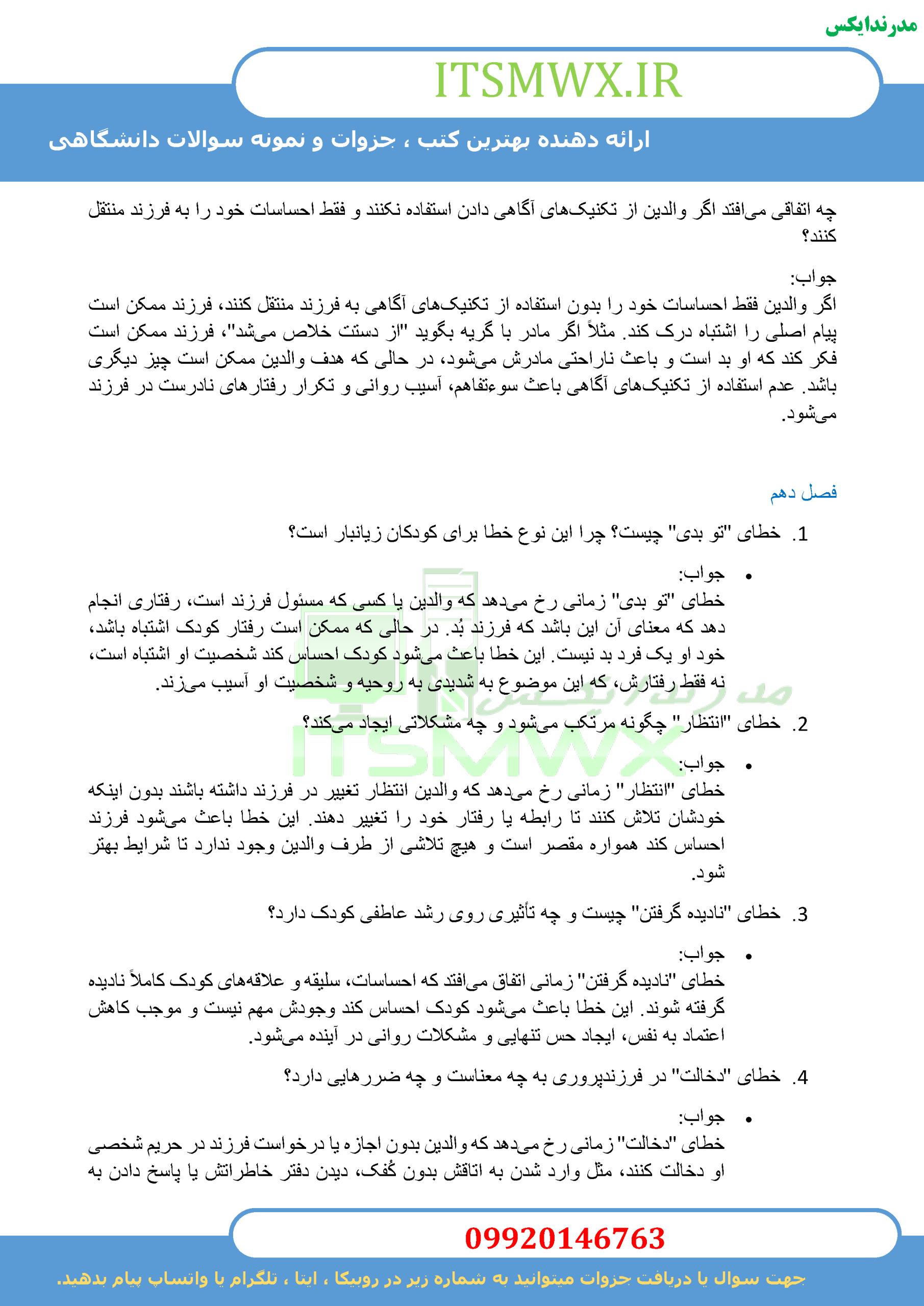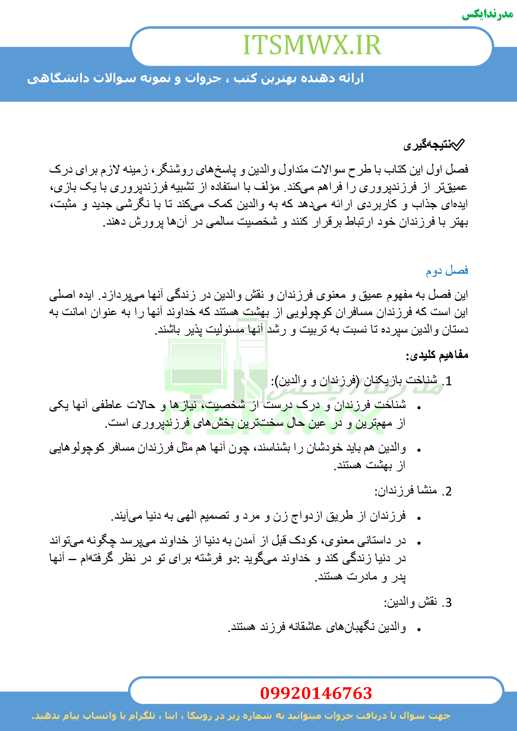 نمونه سوالات تستی و تشریحی فصل به فصل تکنیک های فرزندپروری اثر دکتر سعید جهانشاهی فرد + خلاصه و کتاب(قابل سرچ)