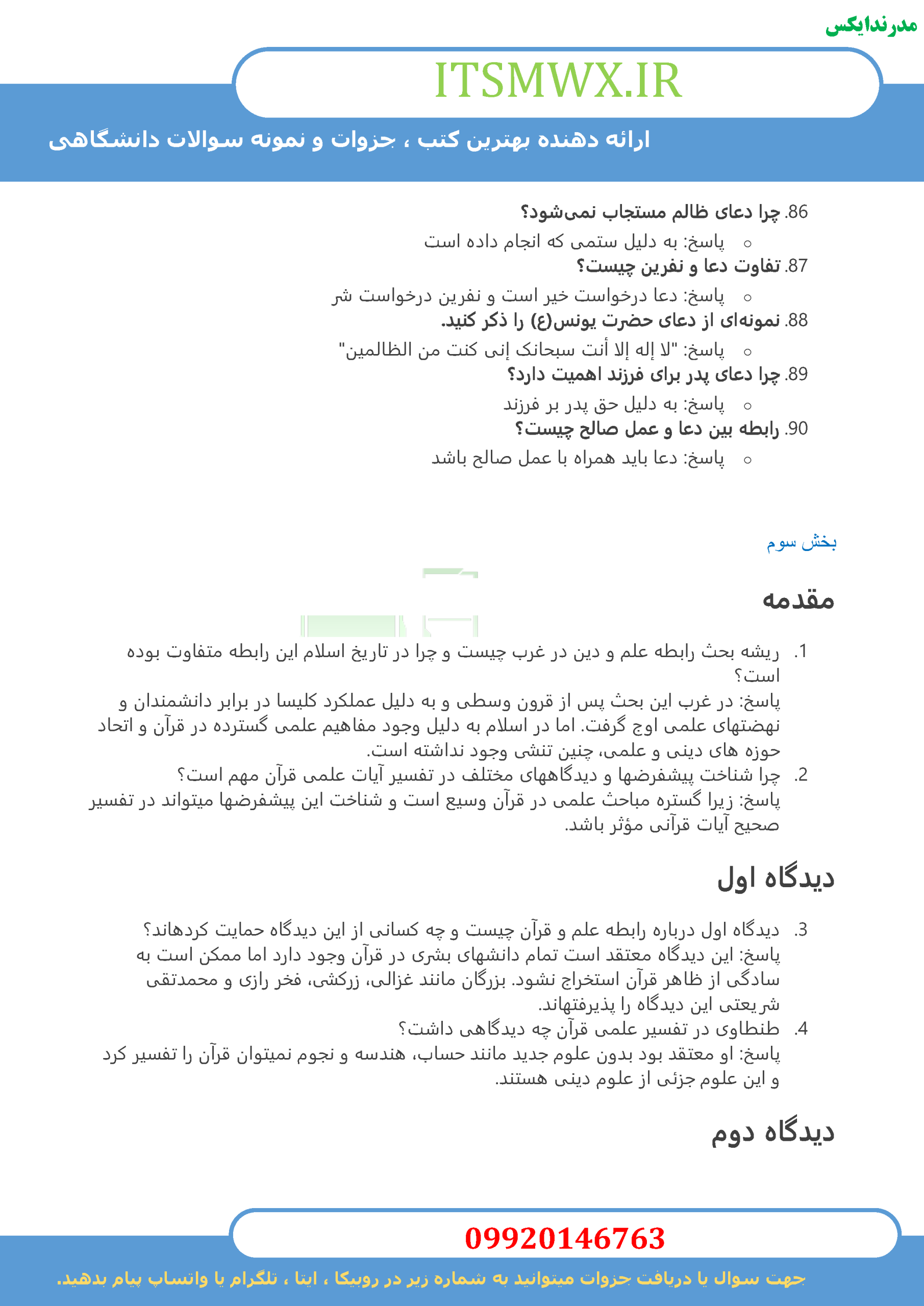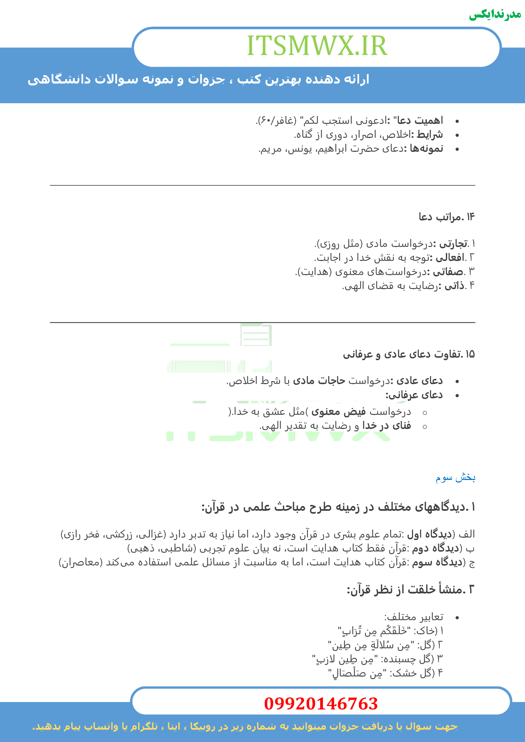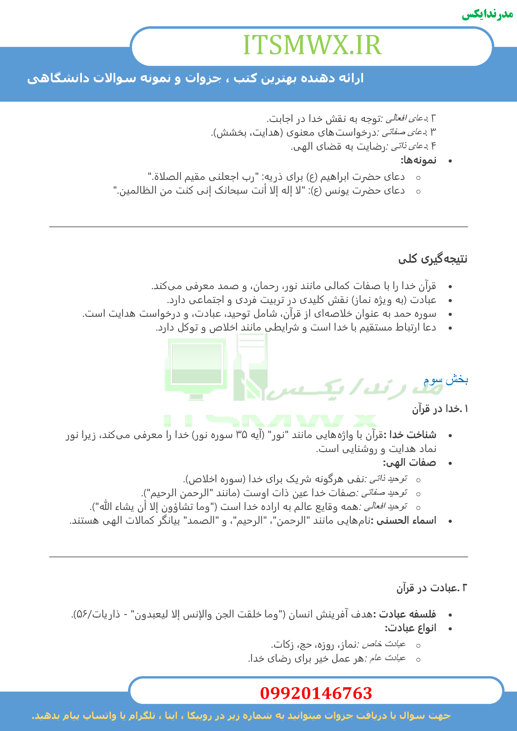 - درک عمیقتر مطالب : پاسخهای کامل به سوالات تشریحی و پرسشهای کتاب درسی، به فهم عمیقتر از مفاهیم تفسیر موضوعی قرآن کمک میکند.