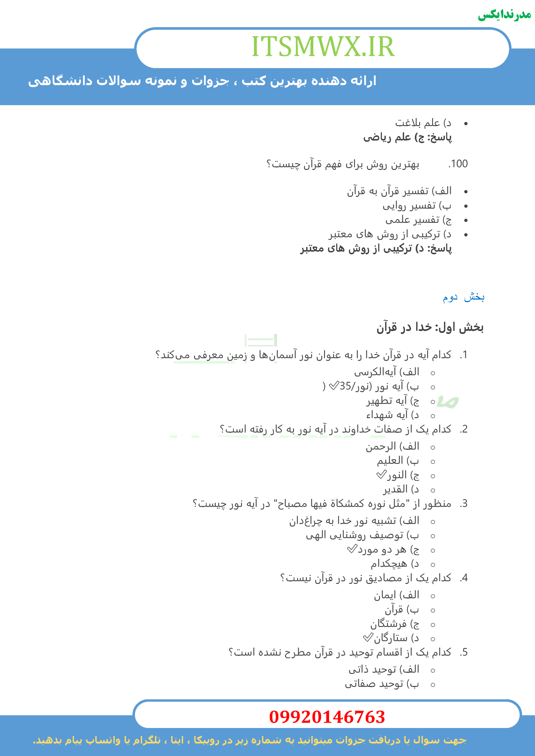 نوشته شده با هدف آشنایی بیشتر با منبع معتبر “نمونه سوالات تستی و تشریحی فصل به فصل تفسیر موضوعی قرآن” برای دانشجویان رشتههای علوم پزشکی.