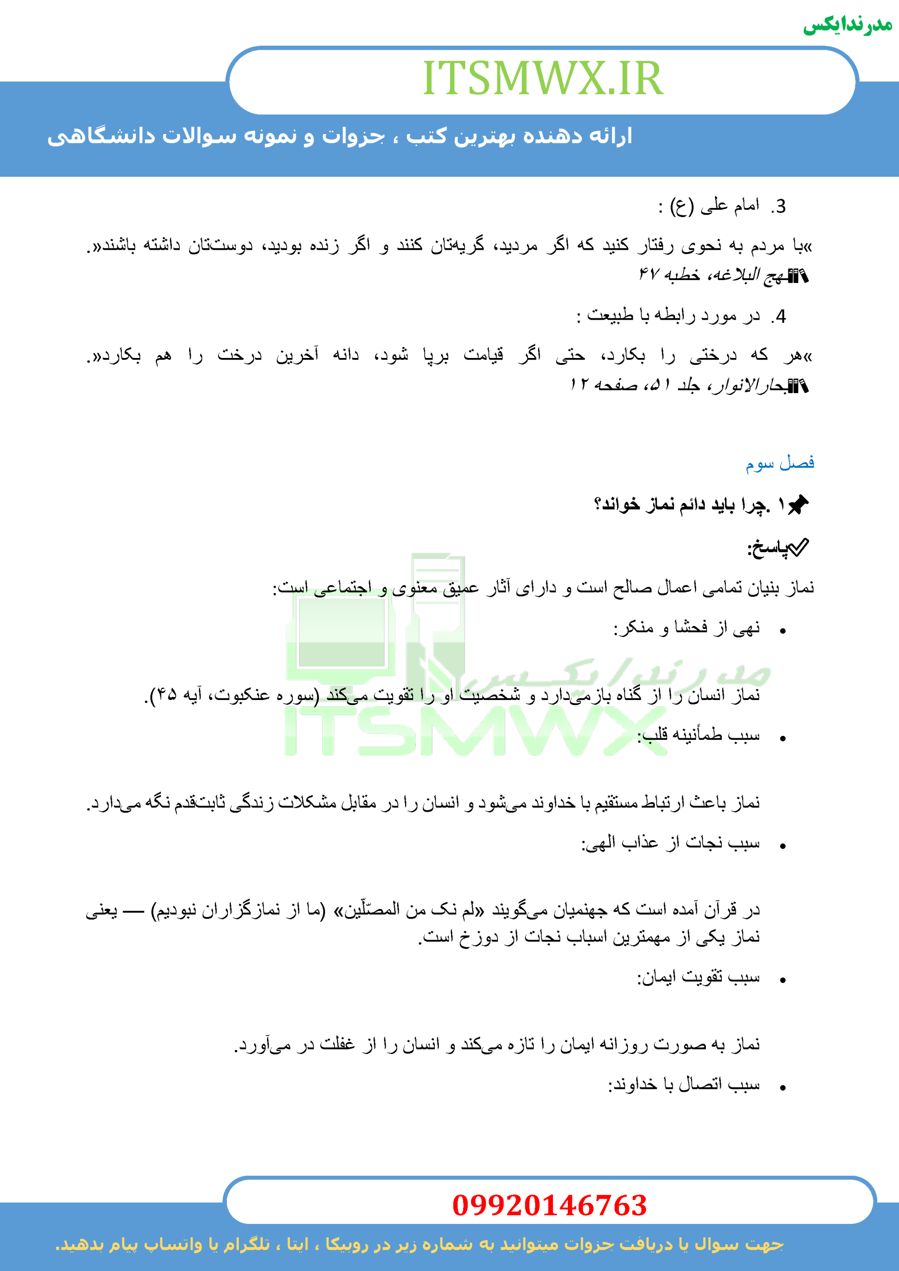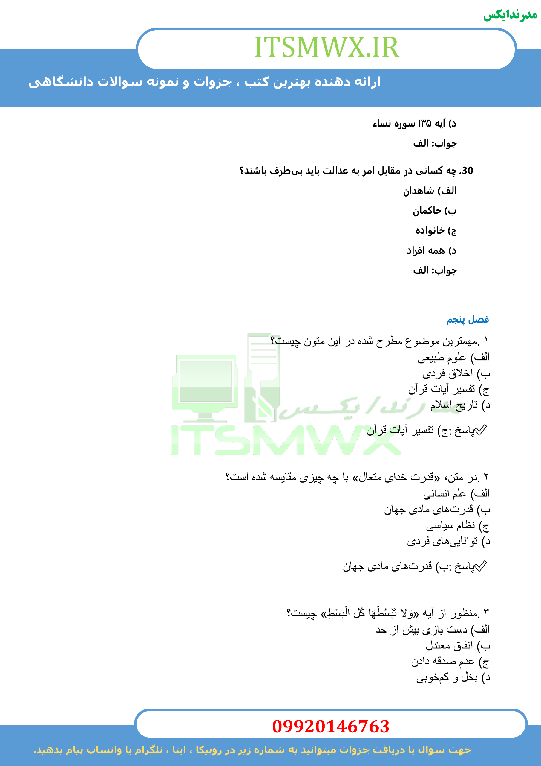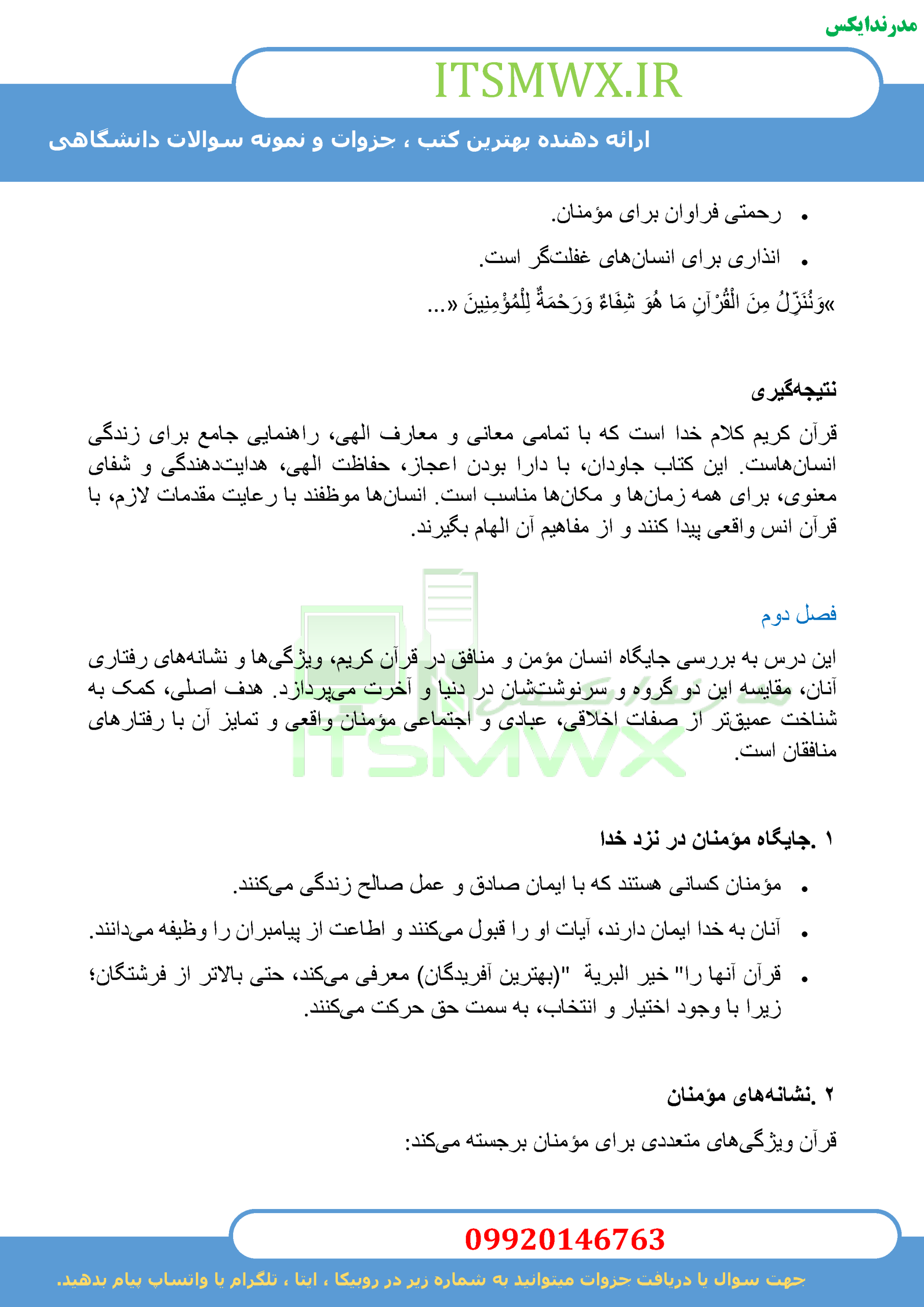 نمونه سوالات تستی و تشریحی فصل به فصل تفسیر قرآن مجید (آیات منتخب) با تاکید بر تفسیر نمونه اثر دکتر علیرضا کمالی + کتاب و خلاصه (قابل سرچ)
