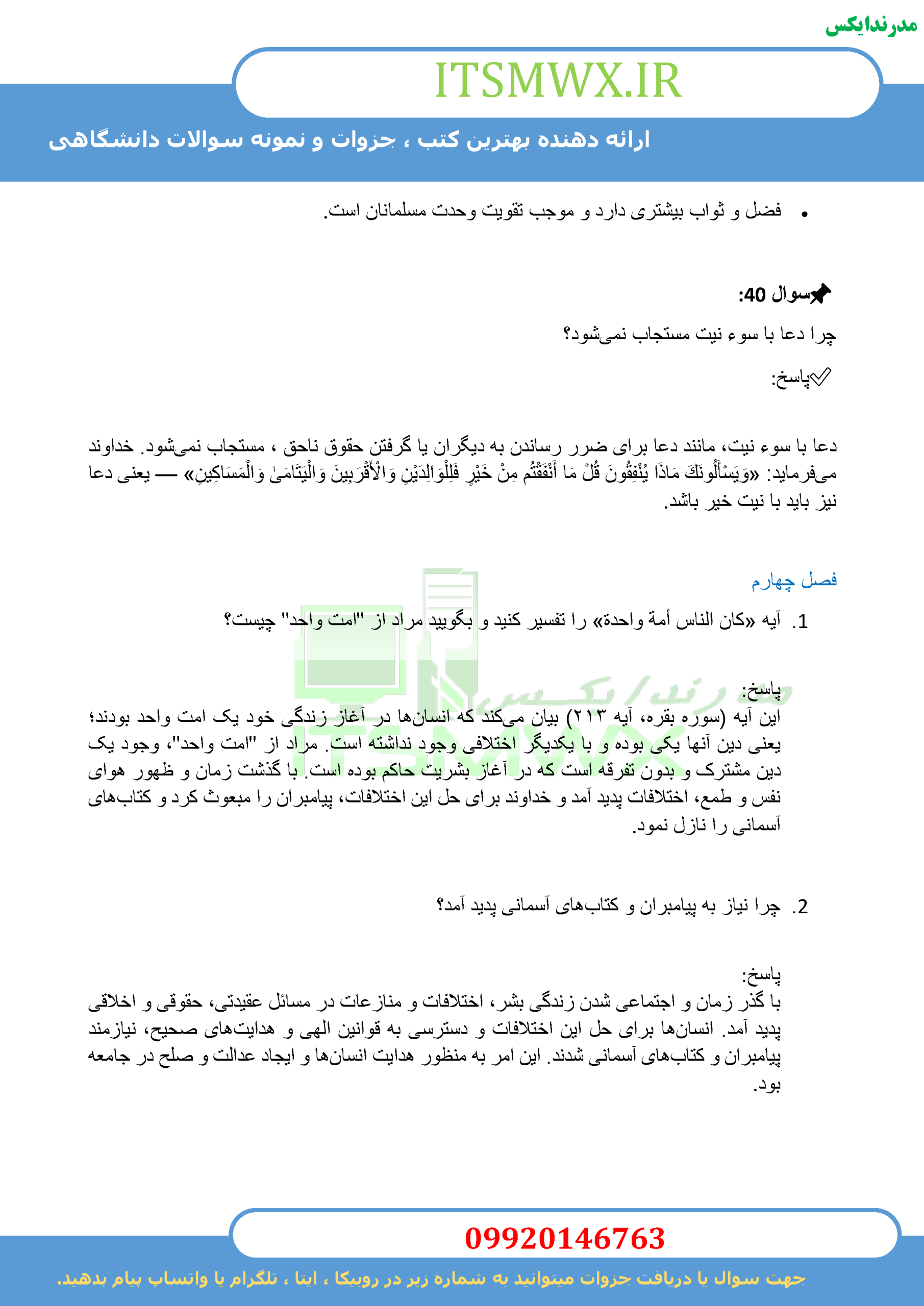 جواب پرسش های آخر فصل با قابلیت سرچ