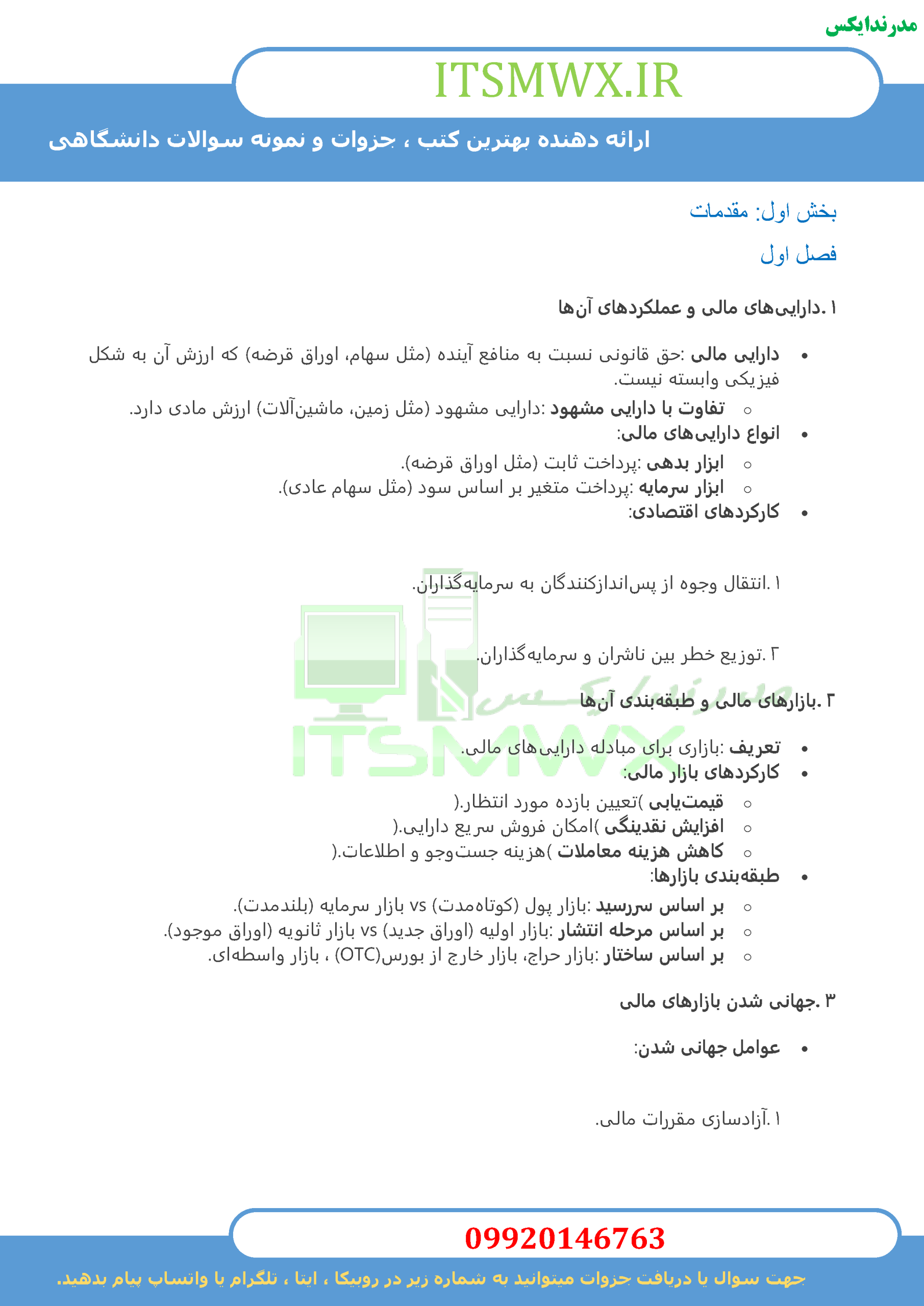 نمونه سوالات تستی و تشریحی فصل به فصل مبانی بازار ها و نهاد های مالی اثر حسین عبده تبریزی + کتاب و خلاصه