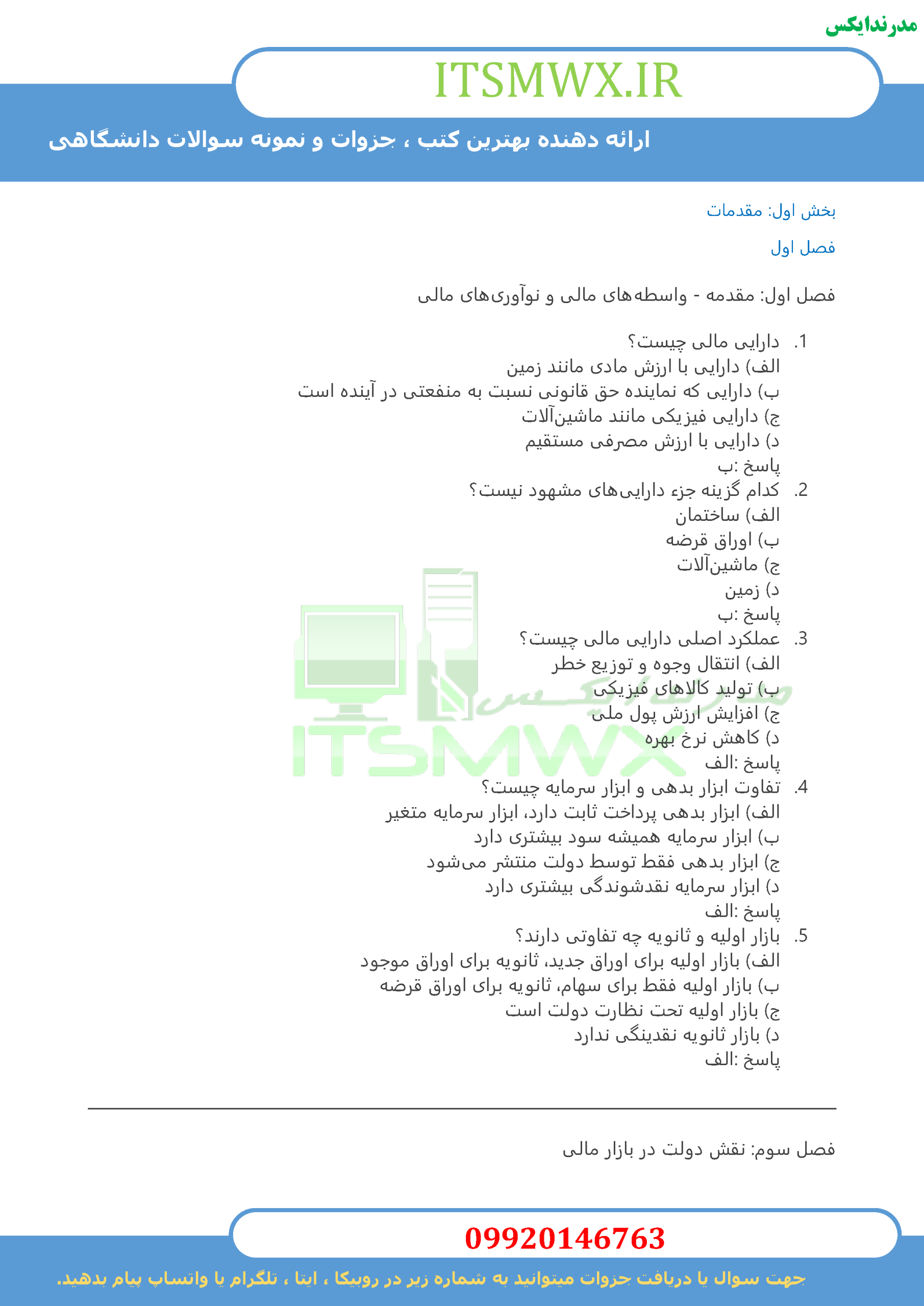 شامل 330 نمونه سوال تستی فصل به فصل به همراه پاسخ کنار سوال با قابلیت سرچ