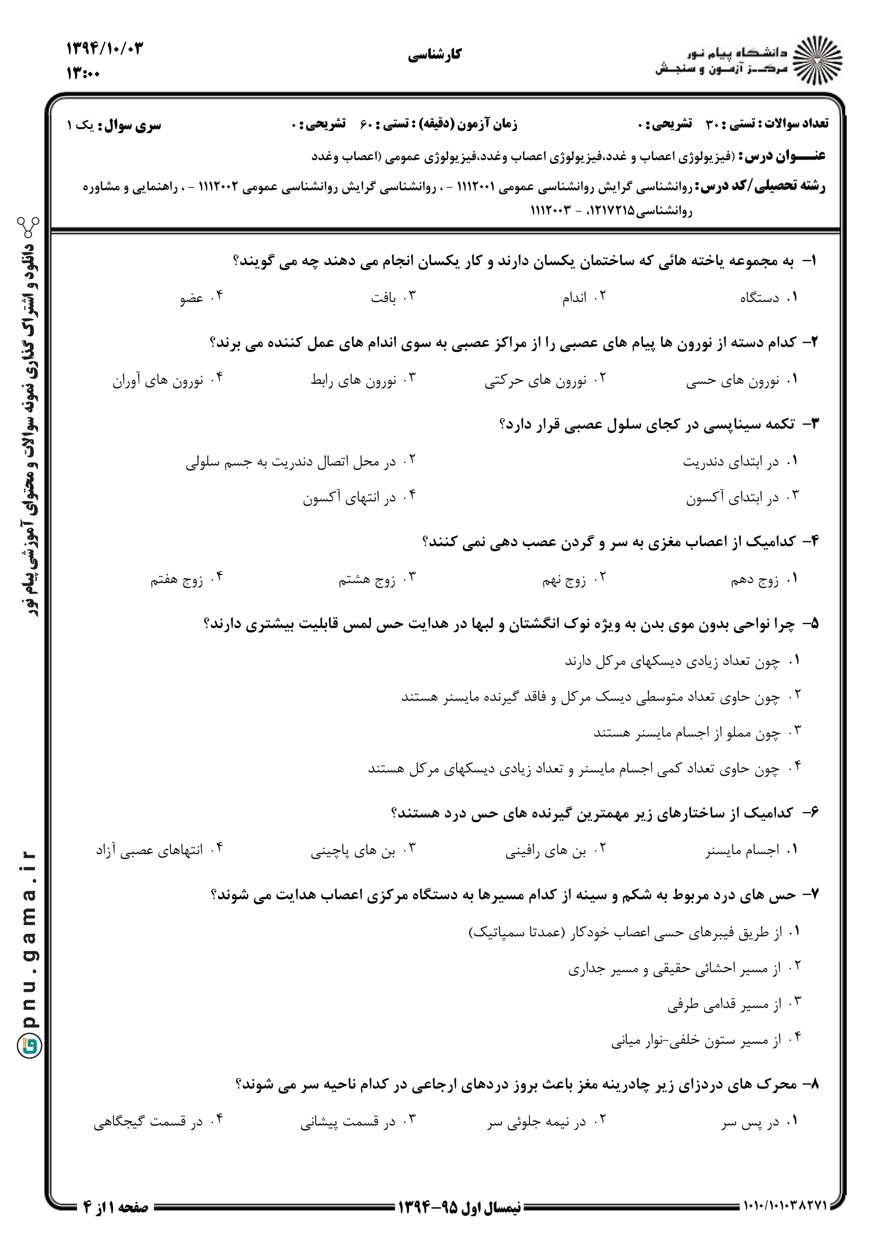 نمونه سوالات فیزیولوژی عمومی همراه جزوه + پاورپوینت و کتاب