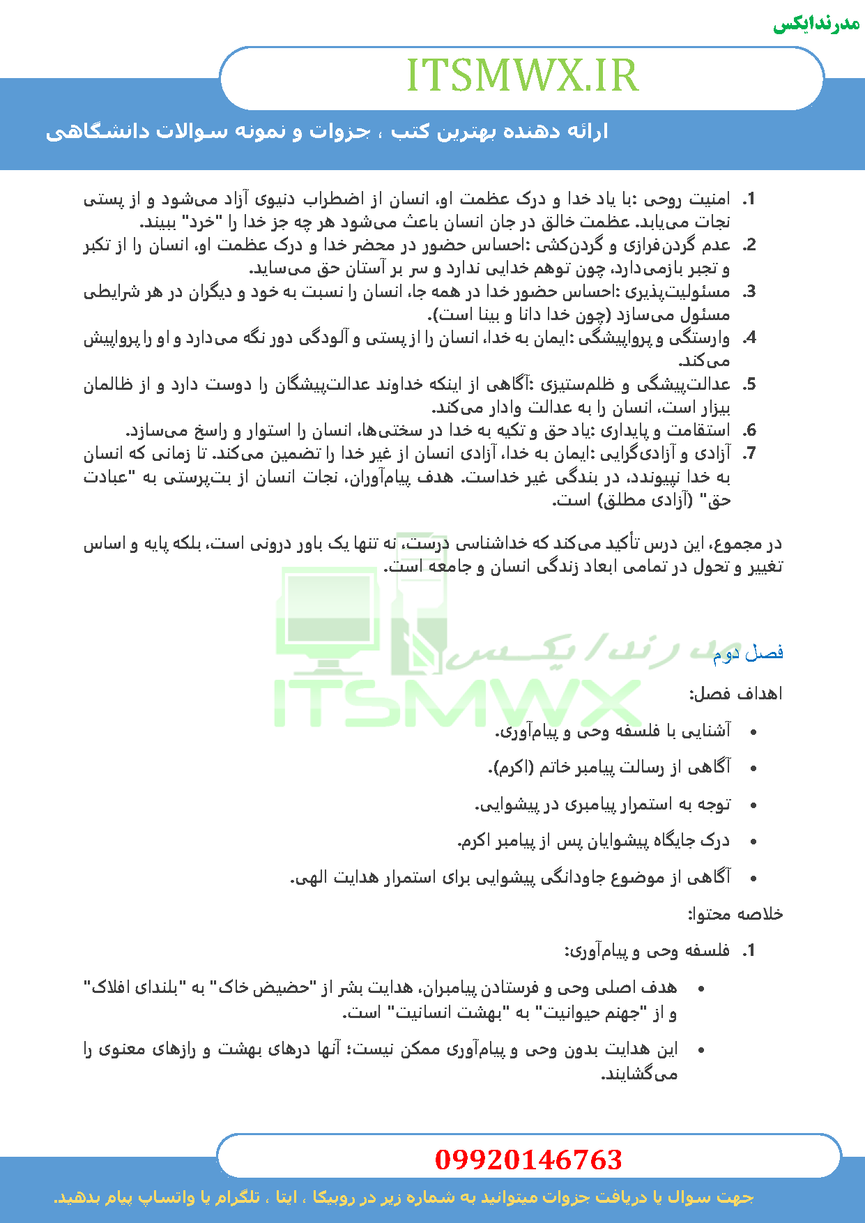نمونه سوالات فصل به فصل اندیشه اسلامی 1 + جزوه و کتاب