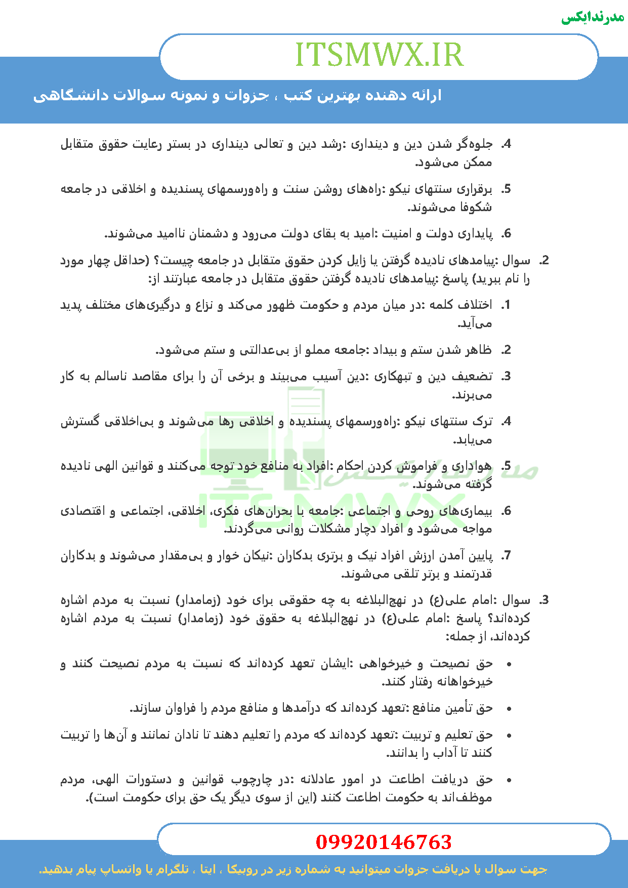 نمونه سوالات تستی و تشریحی حقوق اجتماعی و سیاسی در اسلام + خلاصه و کتاب