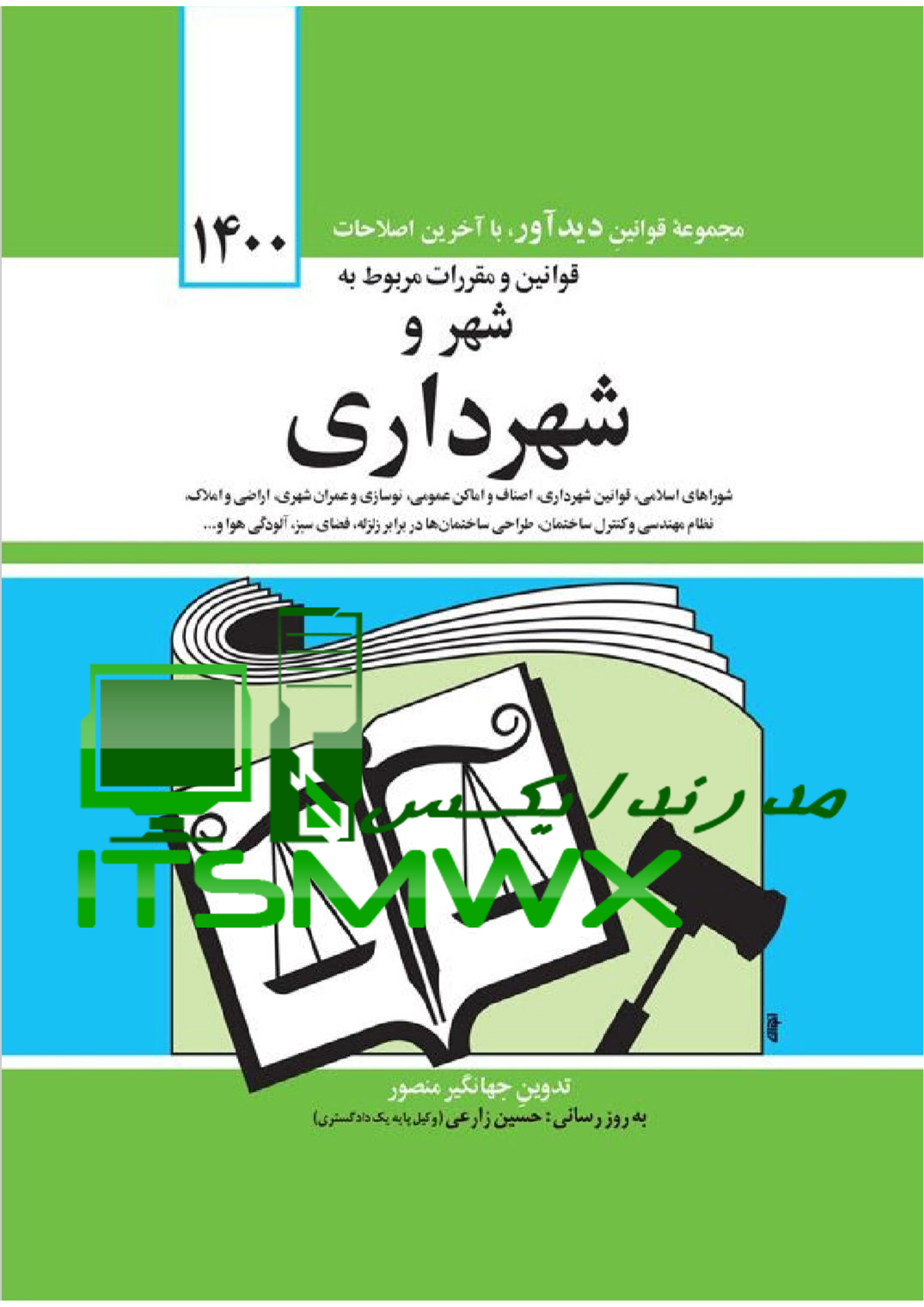 کتاب قوانین و مقررات مربوط به شهر و شهرداری قابل سرچ ( شوراهای اسلامی ، قوانین شهرداری ، اصناف و اماکن عمومی ، نوسازی و عمران شهری ، اراضی و املاک ، نظام مهندسی و کنترل ساختمان ، طراحی ساختمان ها در برابر زلزله ، فضای سبز ، آلودگی هوا و … )تدوین جهانگیر منصور بروز رسانی حسین زارعی ( وکیل پایه یک دادگستری ) مجموعه قوانین دید آور ، با آخرین اصلاحات 1400 تایپ شده