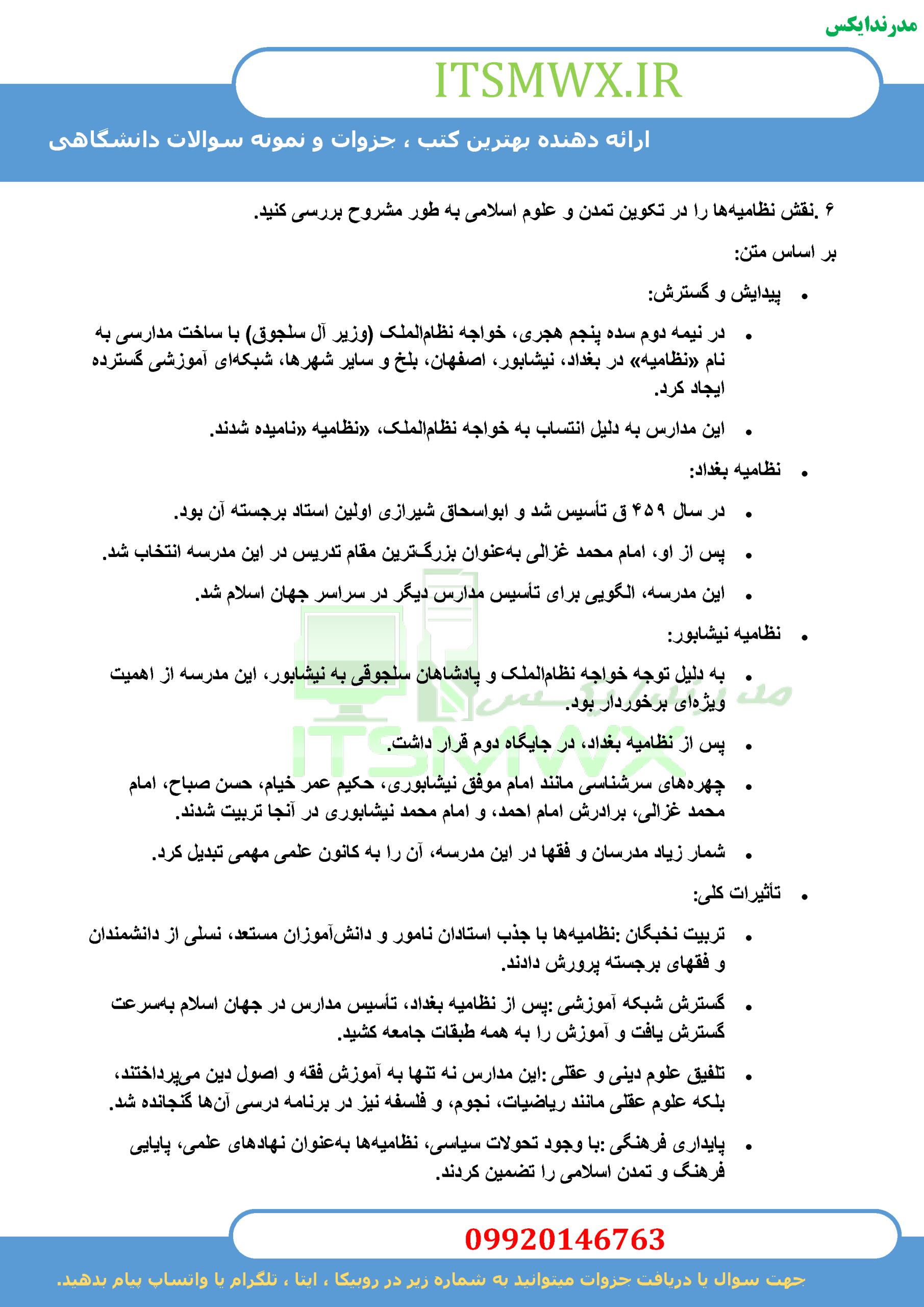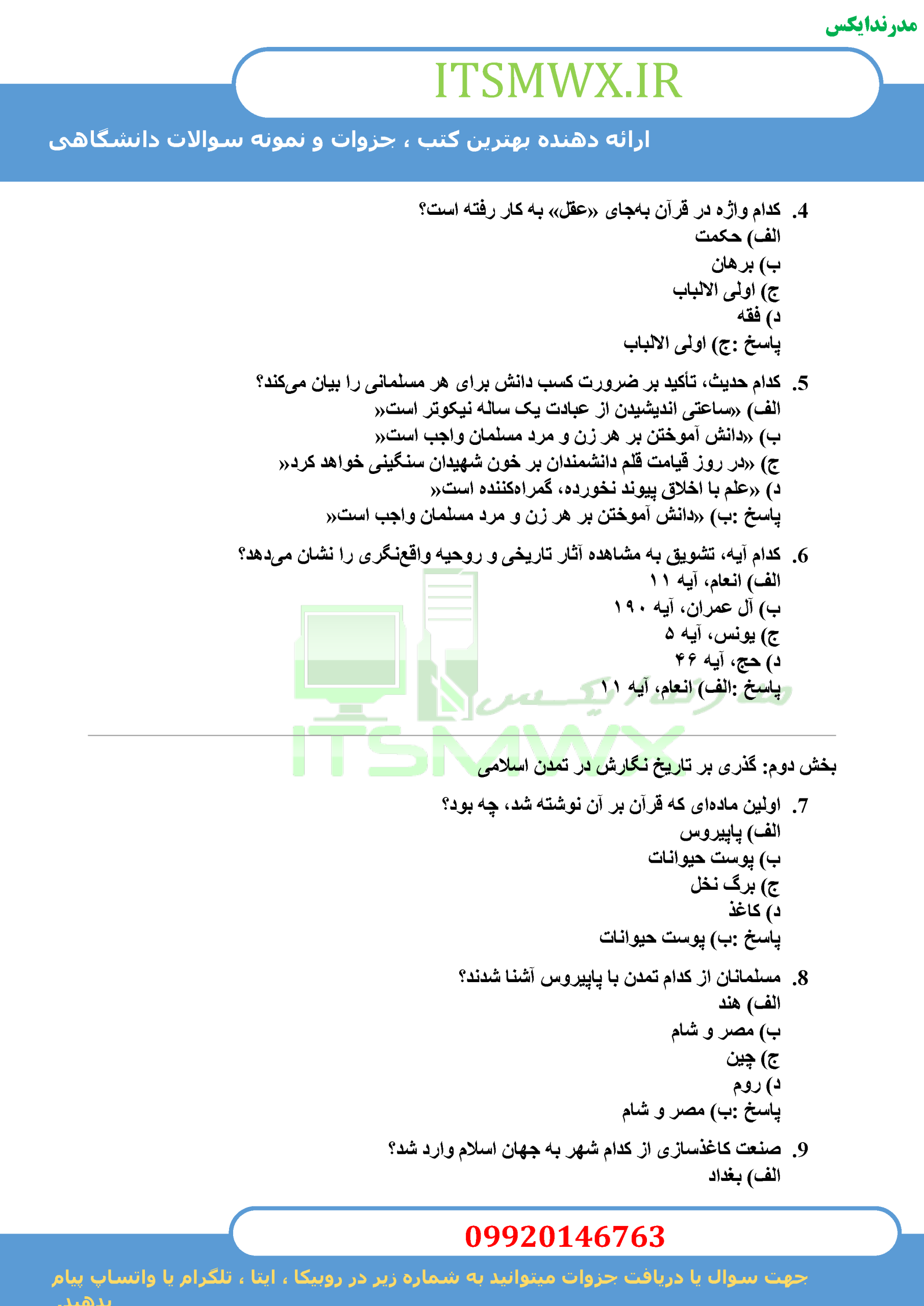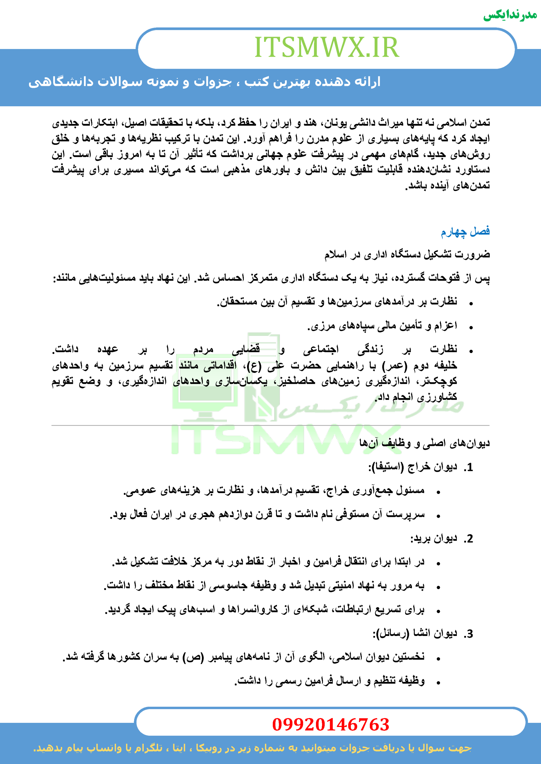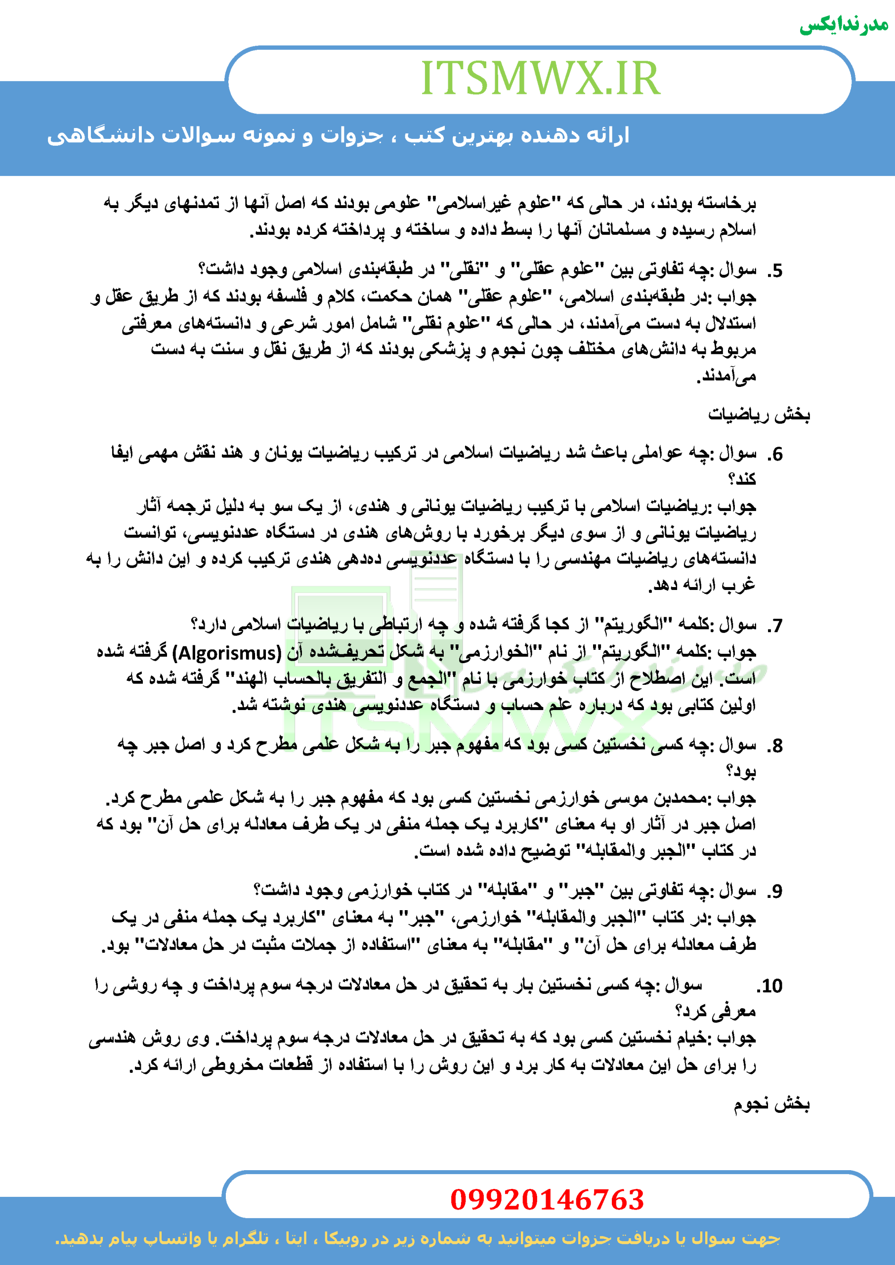 با استفاده از این منبع، نهتنها برای امتحانات آماده میشوید، بلکه درک عمیقتری از تمدن اسلامی و جایگاه آن در تاریخ بشریت پیدا خواهید کرد. این سرمایهگذاری روی دانش شما، موفقیتآمیزترین تصمیم تحصیلی در این ترم خواهد بود.