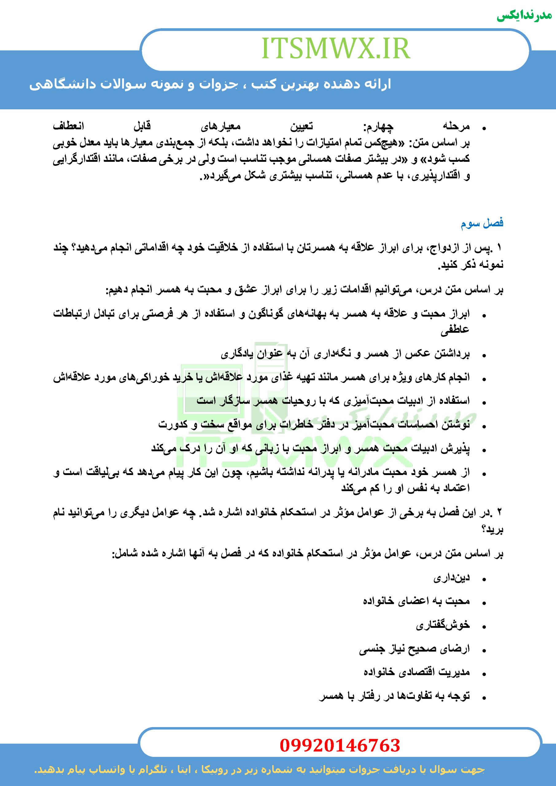 نمونه سوالات فصل به فصل دانش خانواده و جمعیت جمعی از نویسندگان + خلاصه و کتاب با قابلیت سرچ