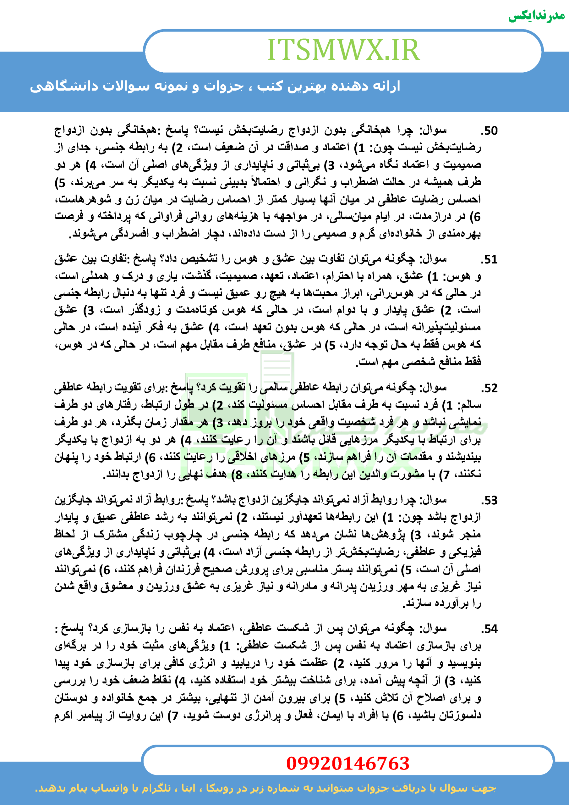 چند مورد از نمونه سوالات دانش خانواده و جمعیت علمی کاربردی: